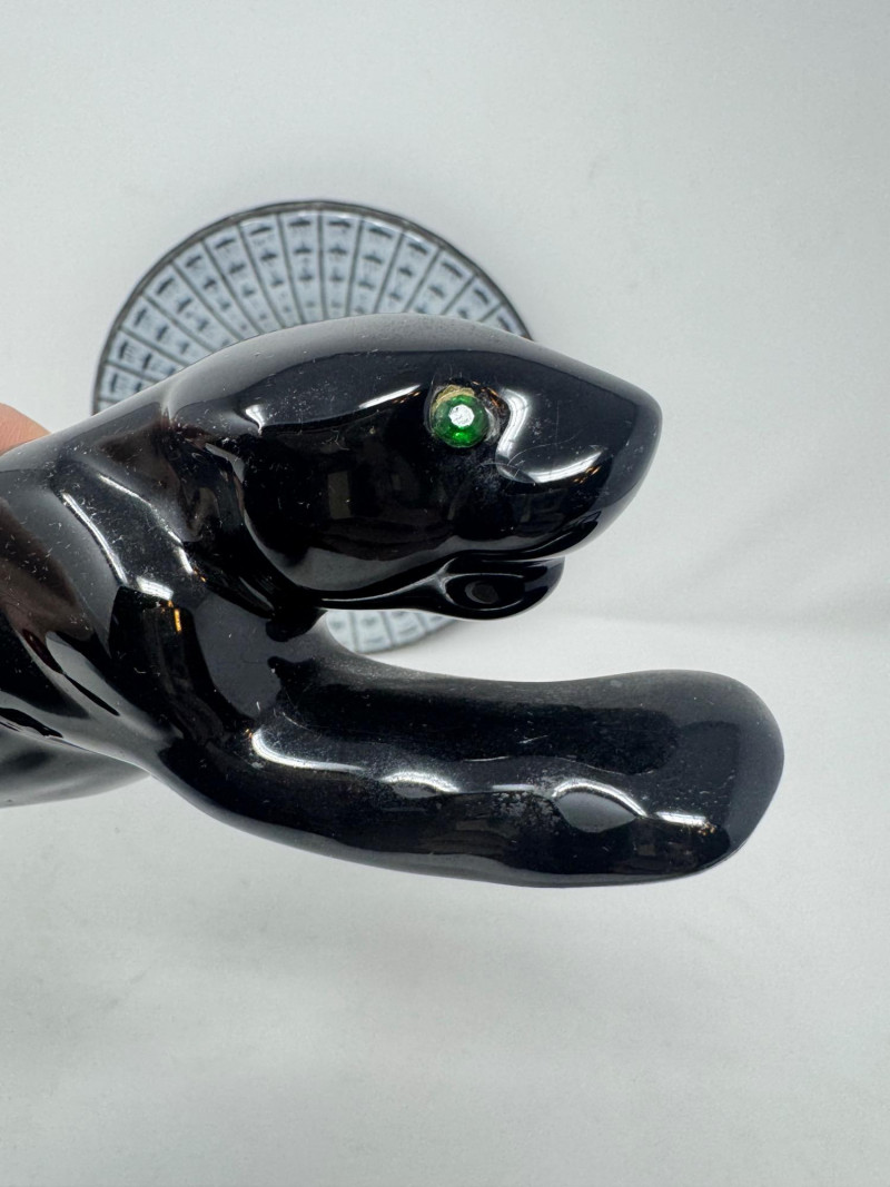 Signed Blown Glass Art Plate & Vintage Black Panther Figurine.