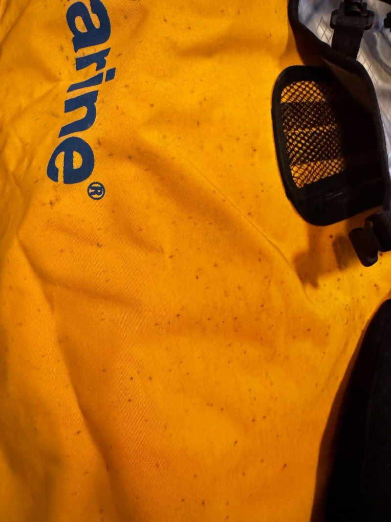 West Marine Inflatable Kayak w/ Paddle, Pump & Life Vest - Set 2. West Marine inflatable kayak, designed for one person Measures approximately 36” wide x 102” long Includes adjustable 2-piece paddle, high-back seat with storage, hand pump, and carry backpack Comes with a Cabela’s automatic inflatable life jacket Condition: shell/cover shows dirt and needs cleaning