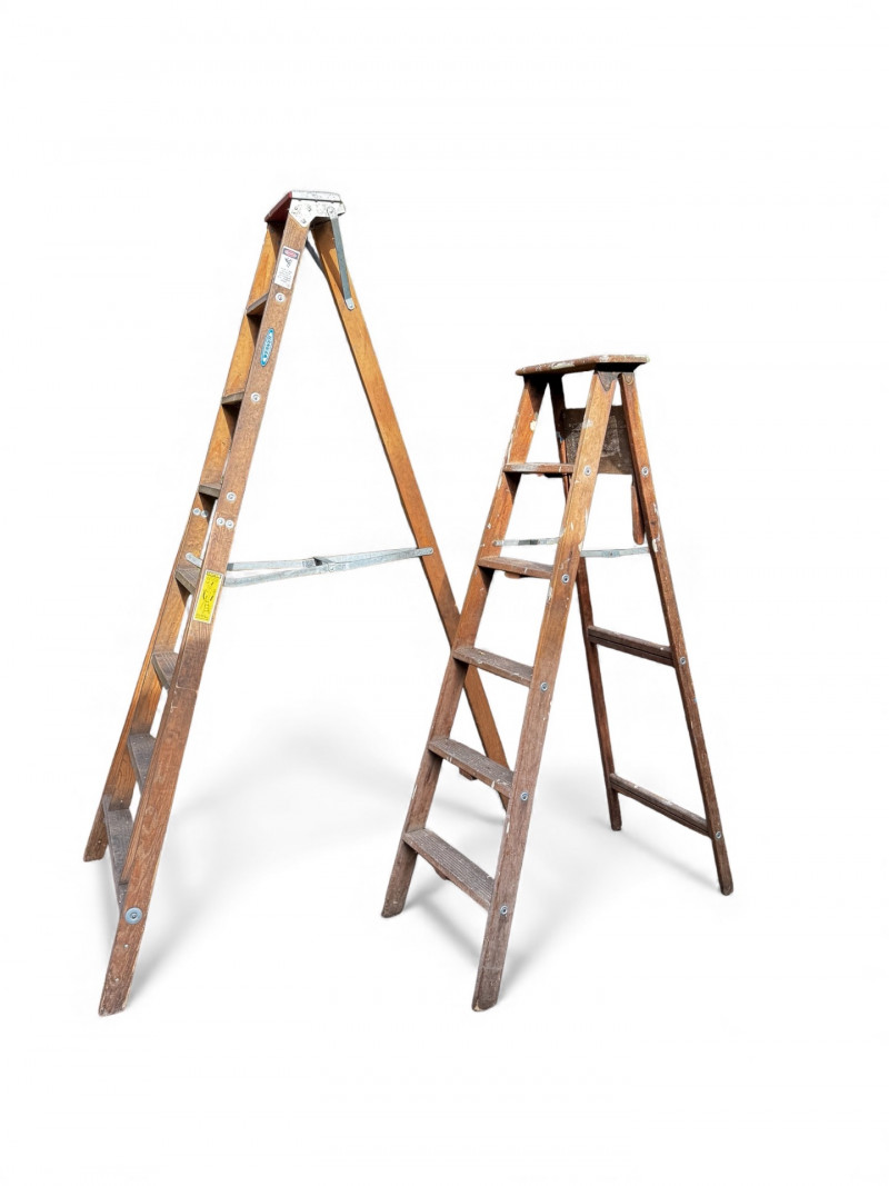 Set of 2 Wooden Step Ladders – Werner 8ft & Smaller Utility Ladder.