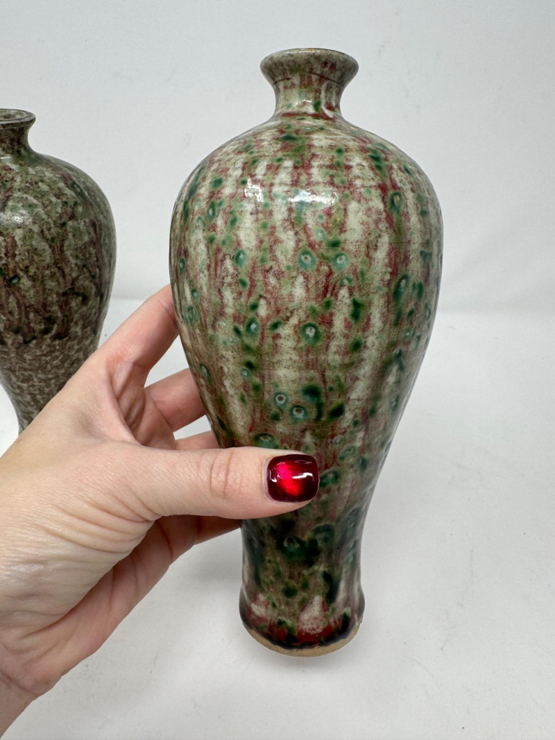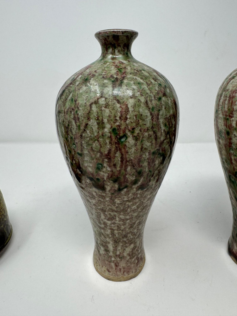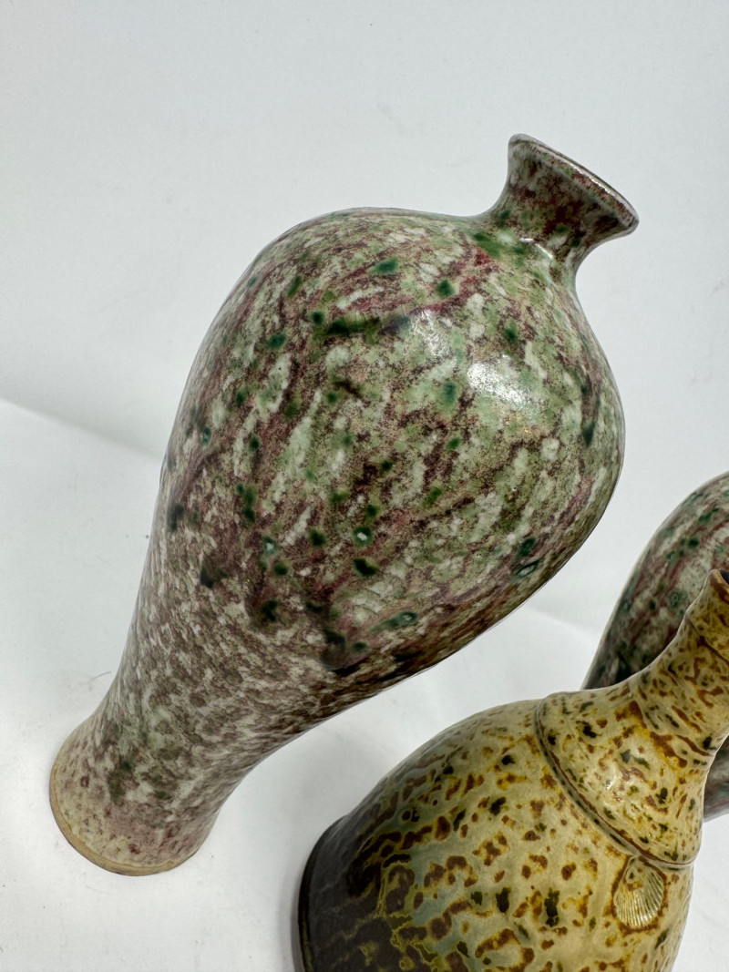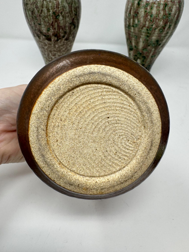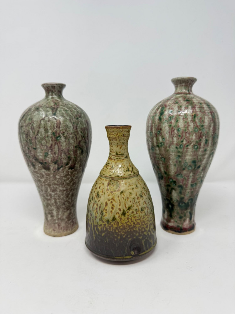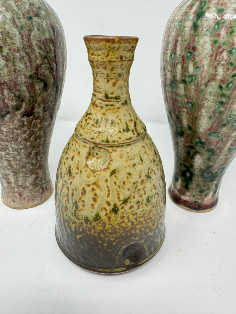 Lot # 130 - Set of 3 Studio Pottery Vases – Textured Drip Glaze Finishes