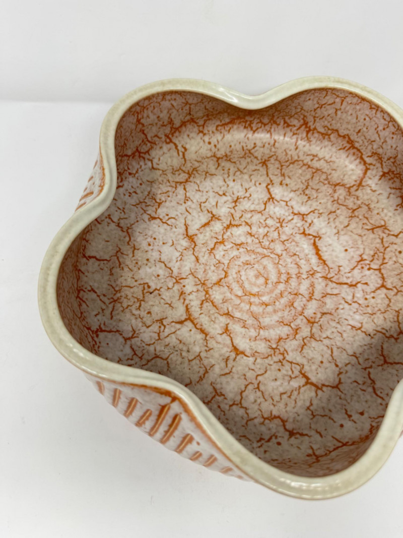 Lot # 134 - Retro Floral Raised Pottery Chip & Dip Bowl Set – Dish & Small Bowl