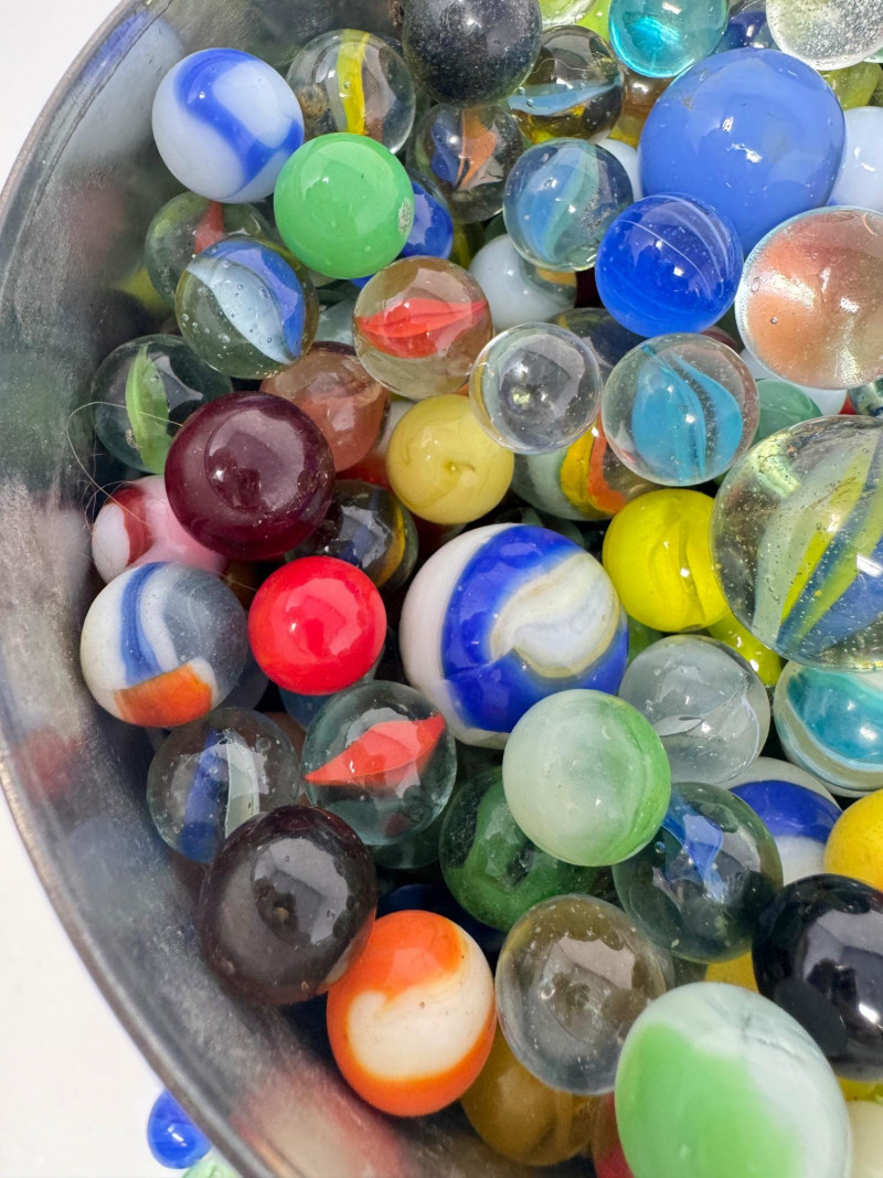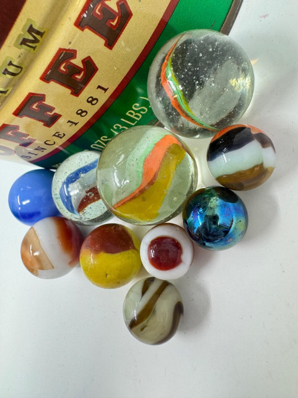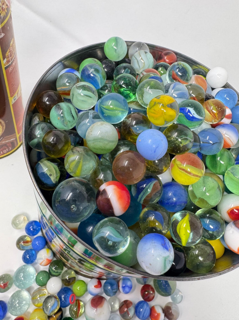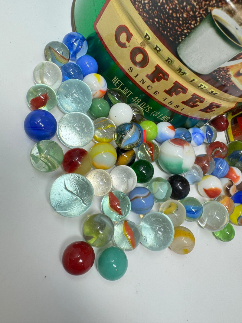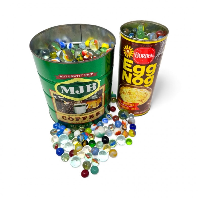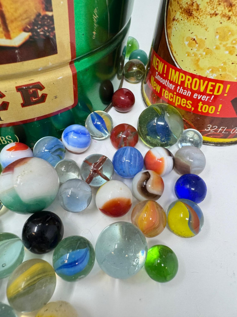 Lot # 6 - Large Vintage Marble Collection in MJB Coffee & Borden Tins