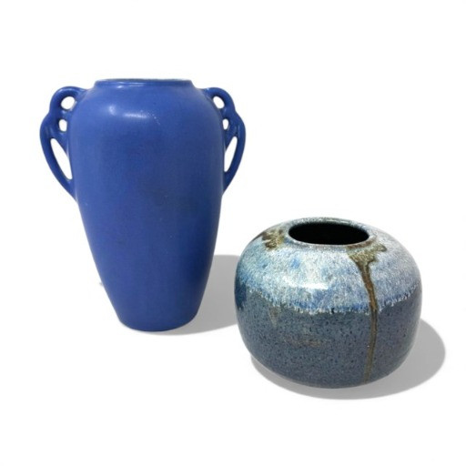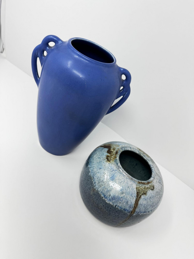 Lot # 17 - Pair of Blue Pottery Vases – Art Pottery Matte & Glazed Finish