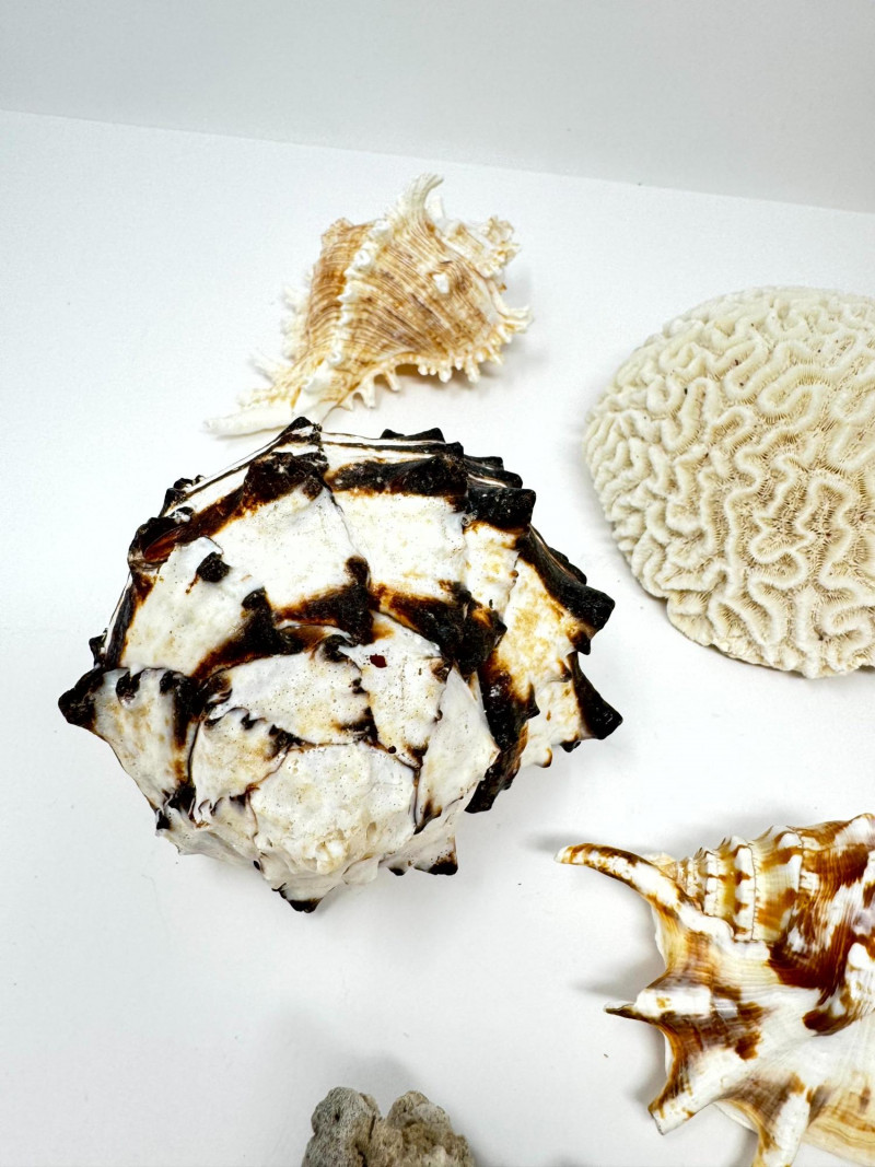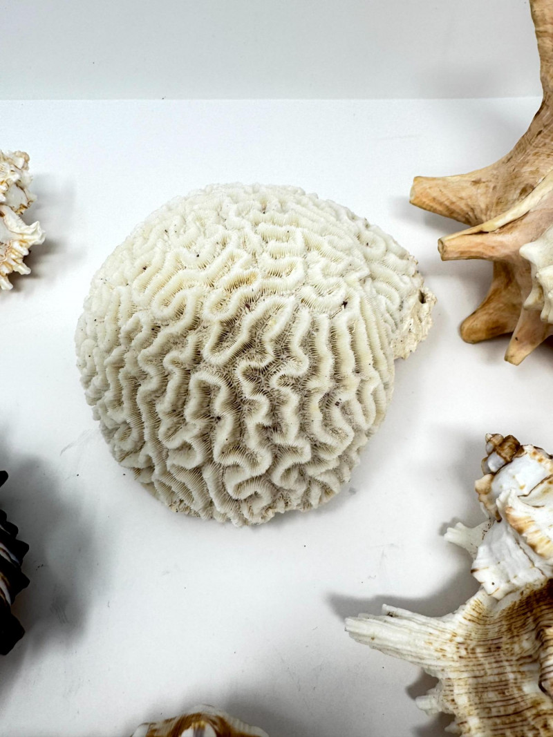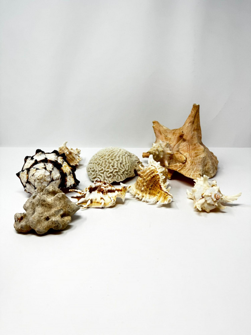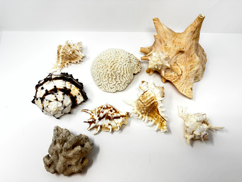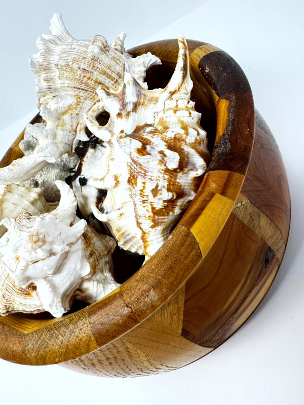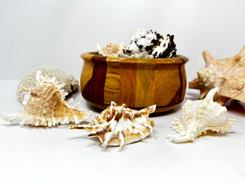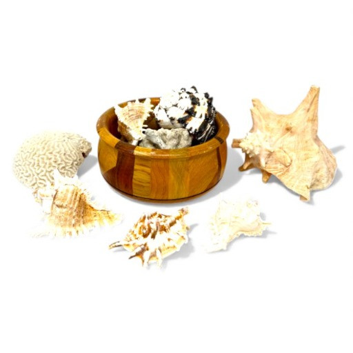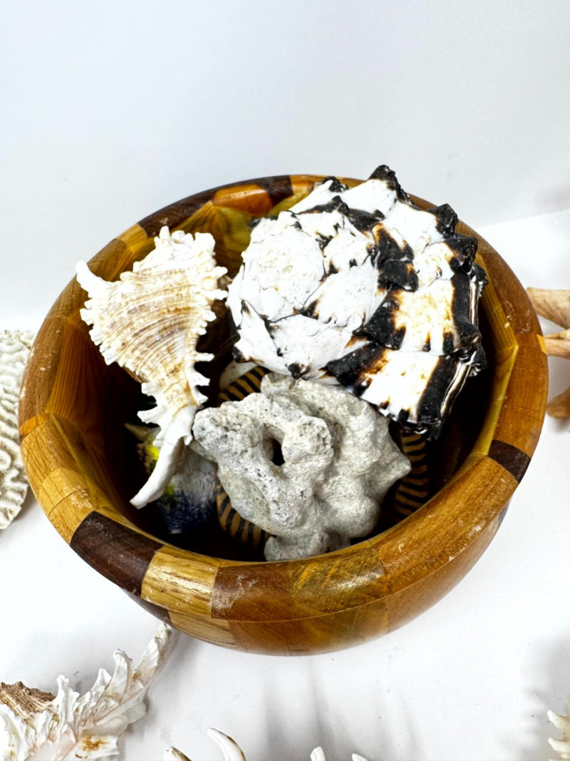 Assorted Sea Shells & Coral w/ Wood Bowl Display.