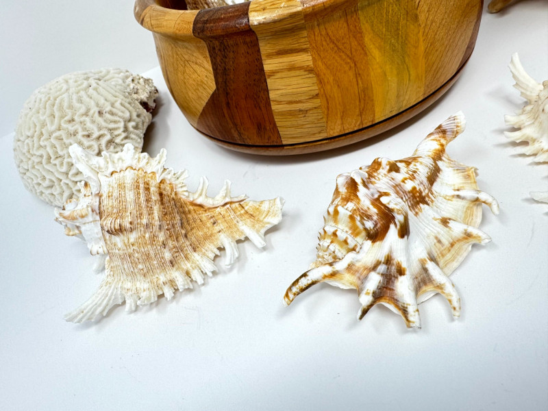 Lot # 21 - Assorted Sea Shells & Coral w/ Wood Bowl Display