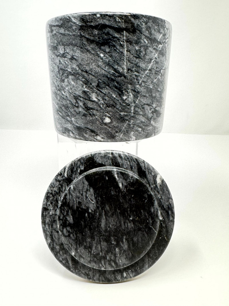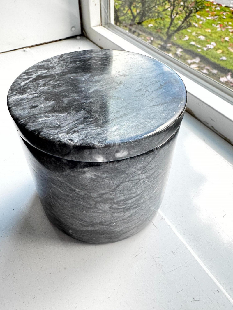 Gray Marble Lidded Jar or Canister – Polished Stone.