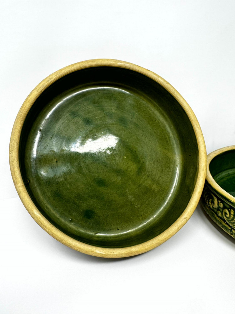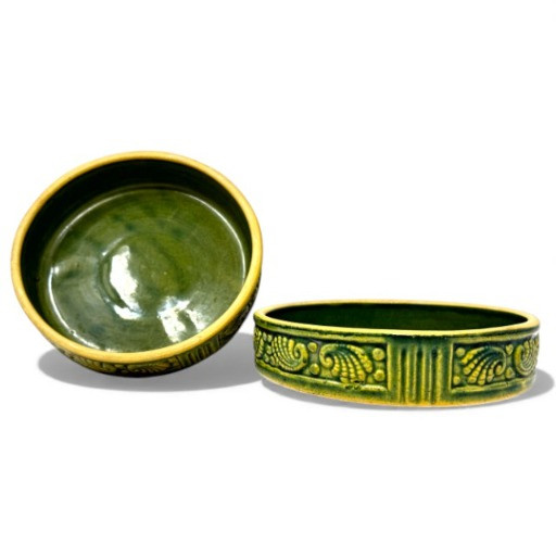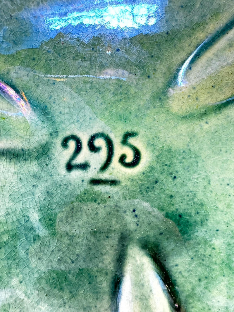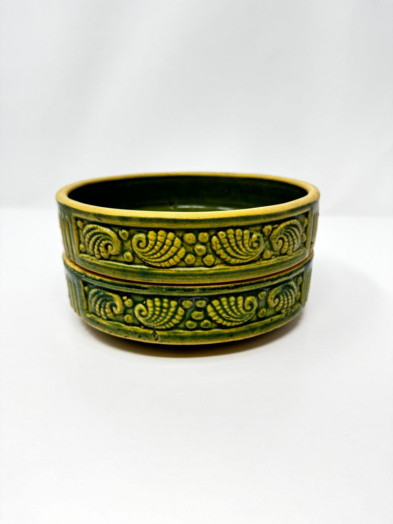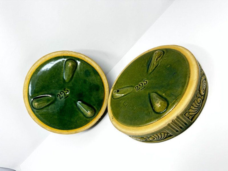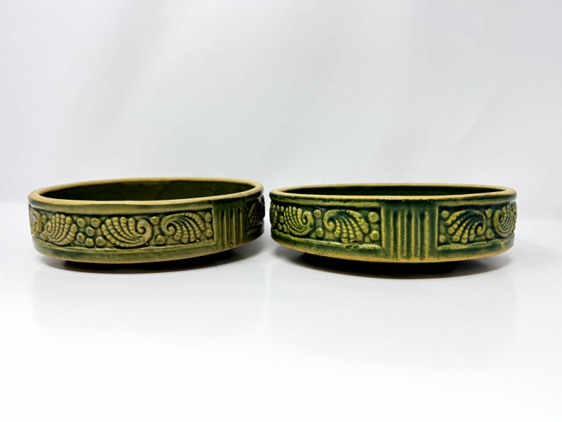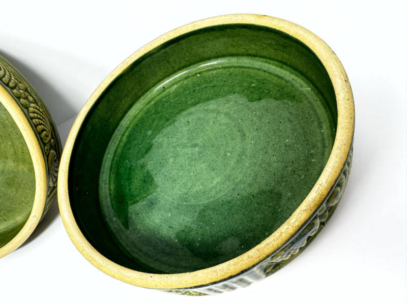 Pair of Green Ceramic Bulb Planters – Shell Motif, Marked 295.