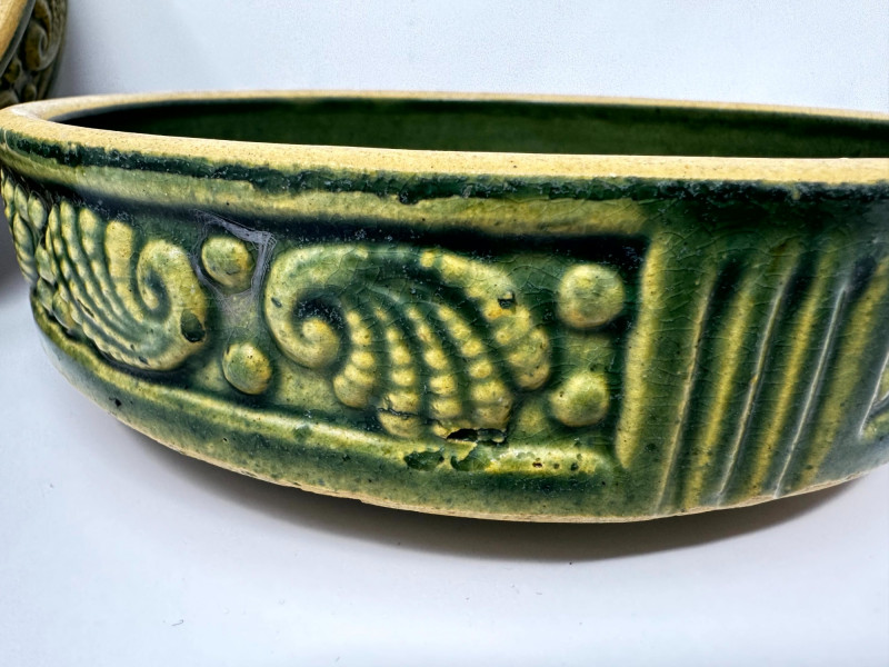 Lot # 26 - Pair of Green Ceramic Bulb Planters – Shell Motif, Marked 295