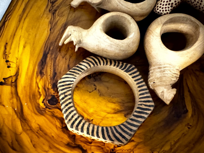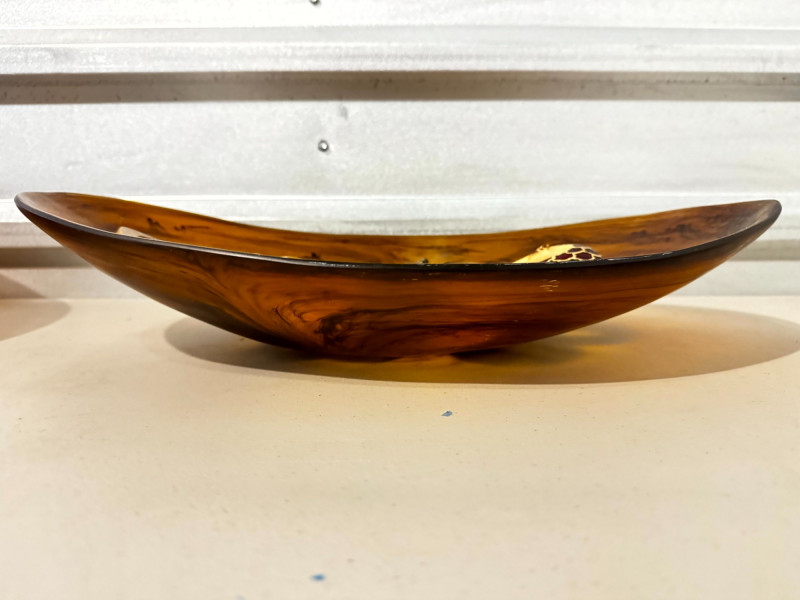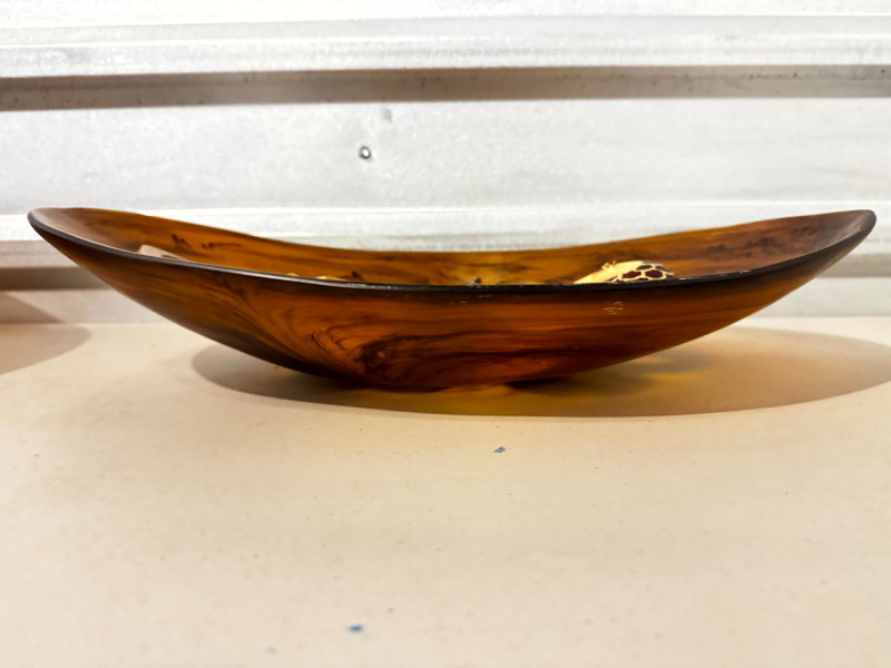 Lot # 29 - Torré & Tagus Amber Plastic Serving Bowls, Carved Wood Leaf Dish +