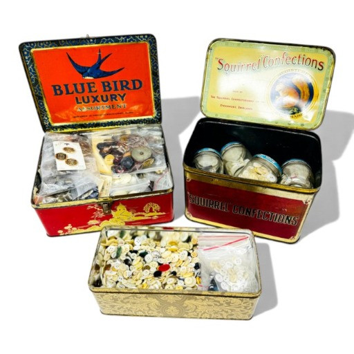 Lot # 30 - 3 Vintage Confection Tins Filled w/ Mixed Buttons