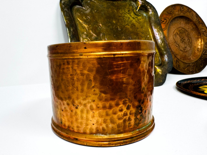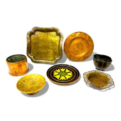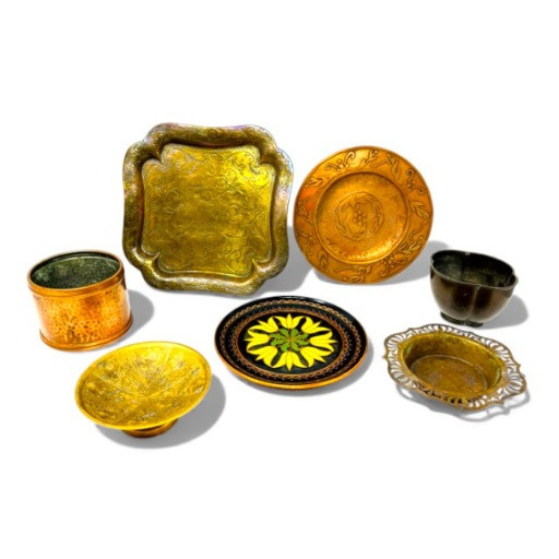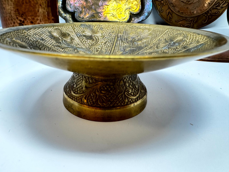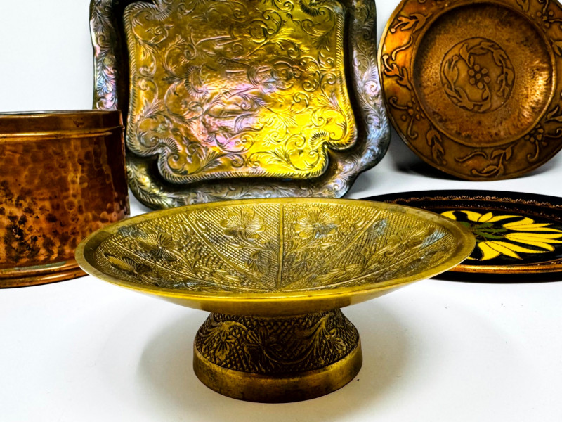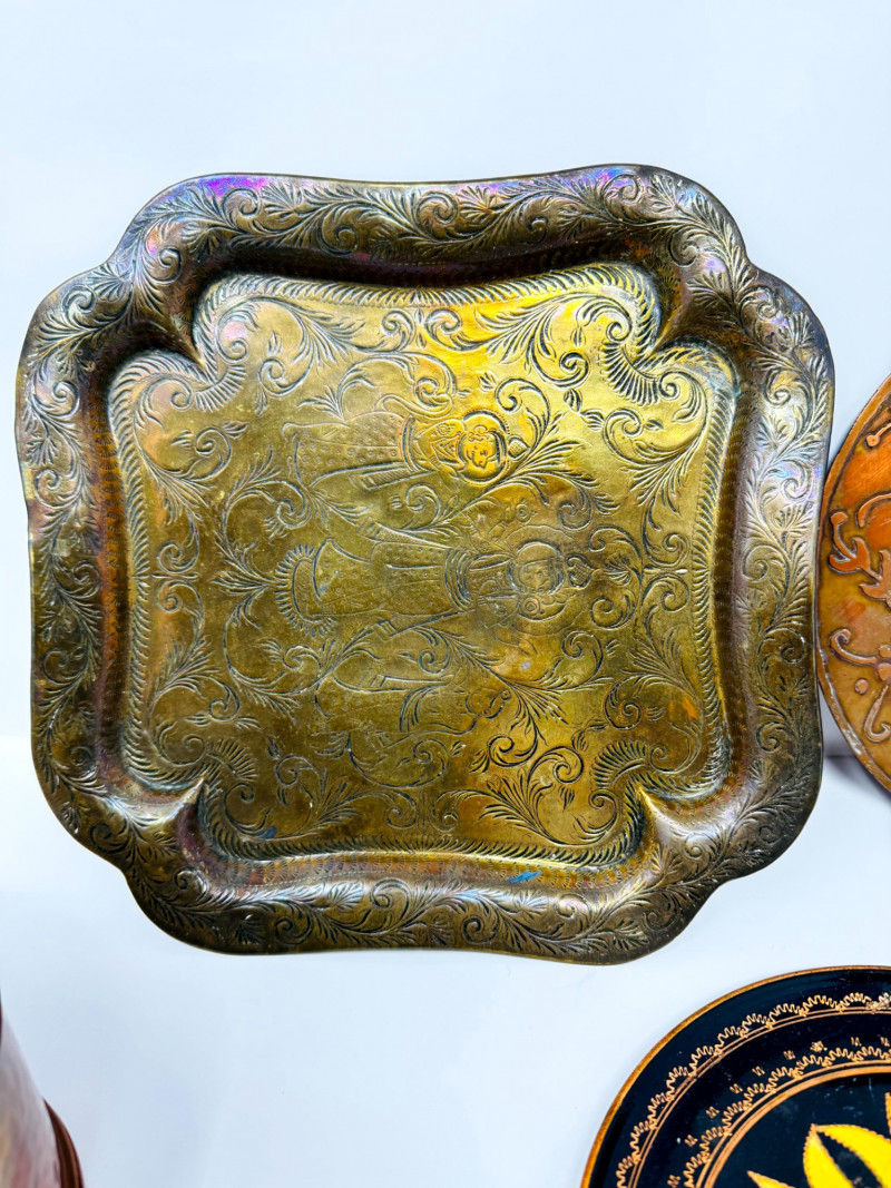 Vintage Metal Plates, Bowls & Trays w/ Etched & Painted Designs.