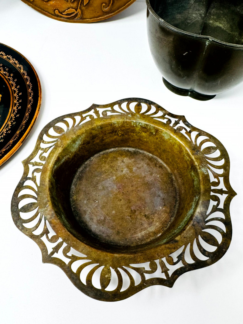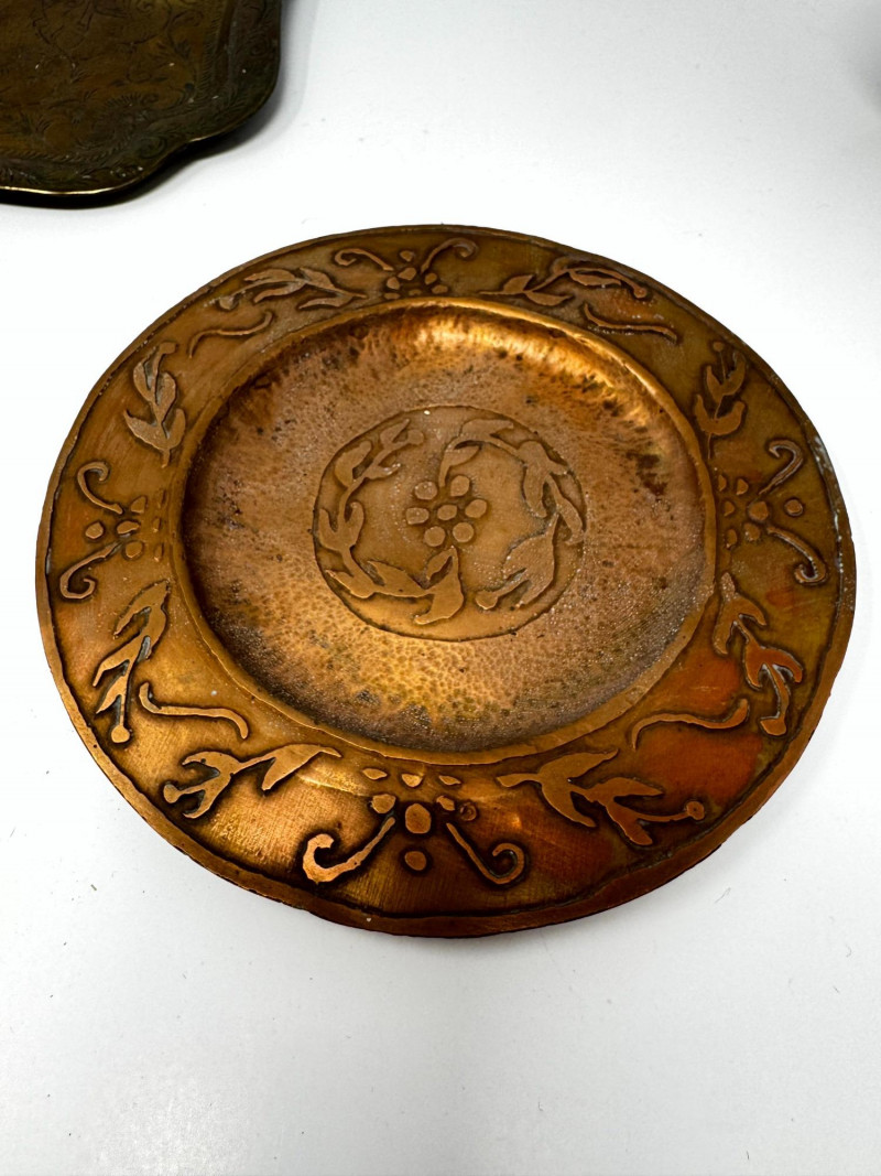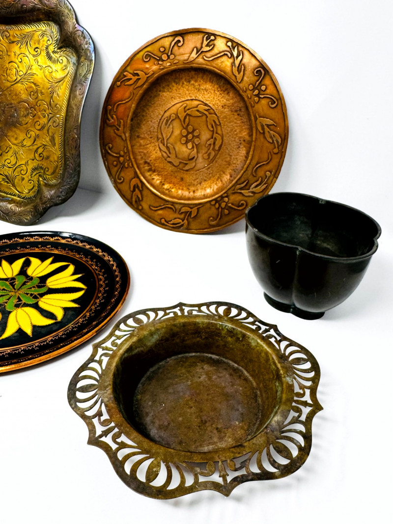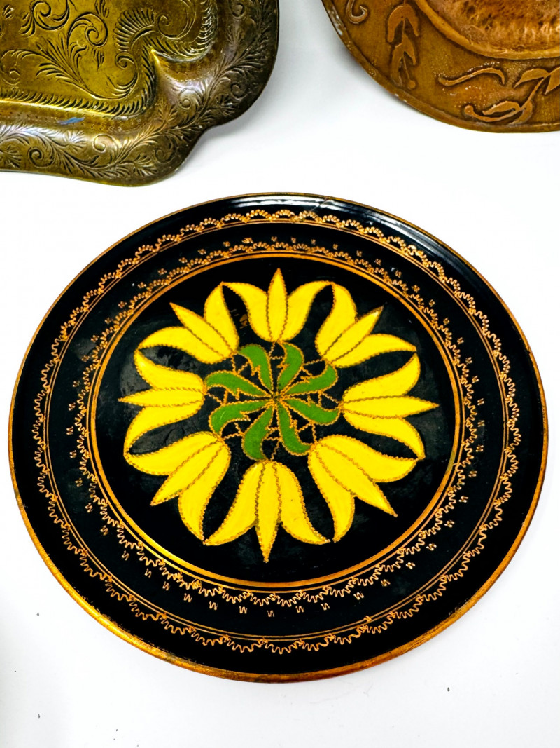 Lot # 32 - Vintage Metal Plates, Bowls & Trays w/ Etched & Painted Designs