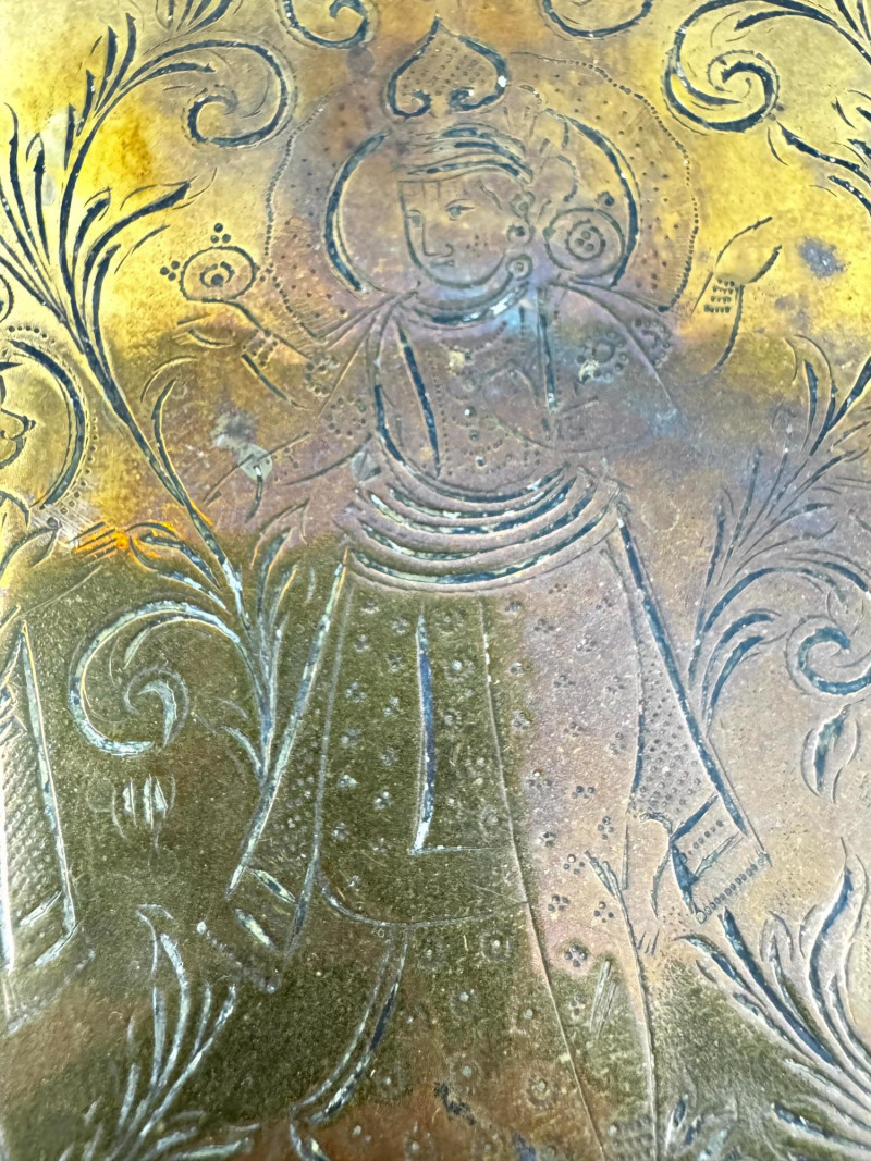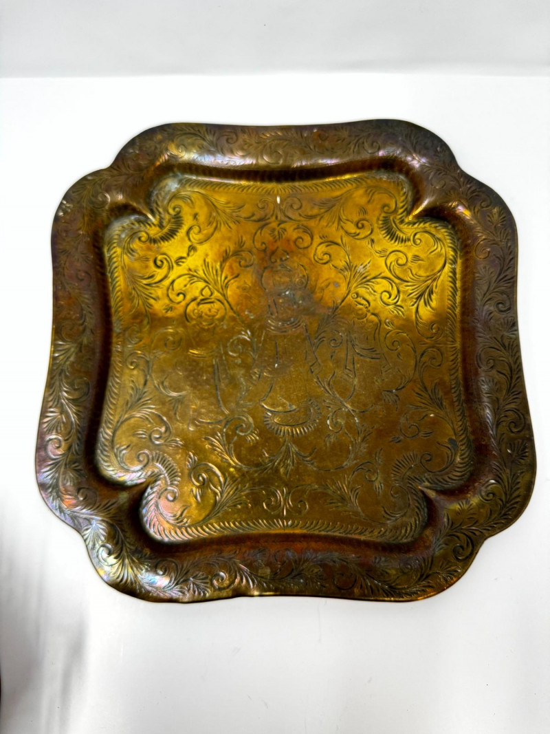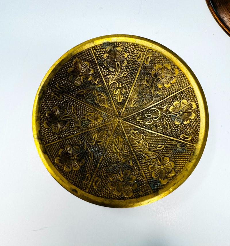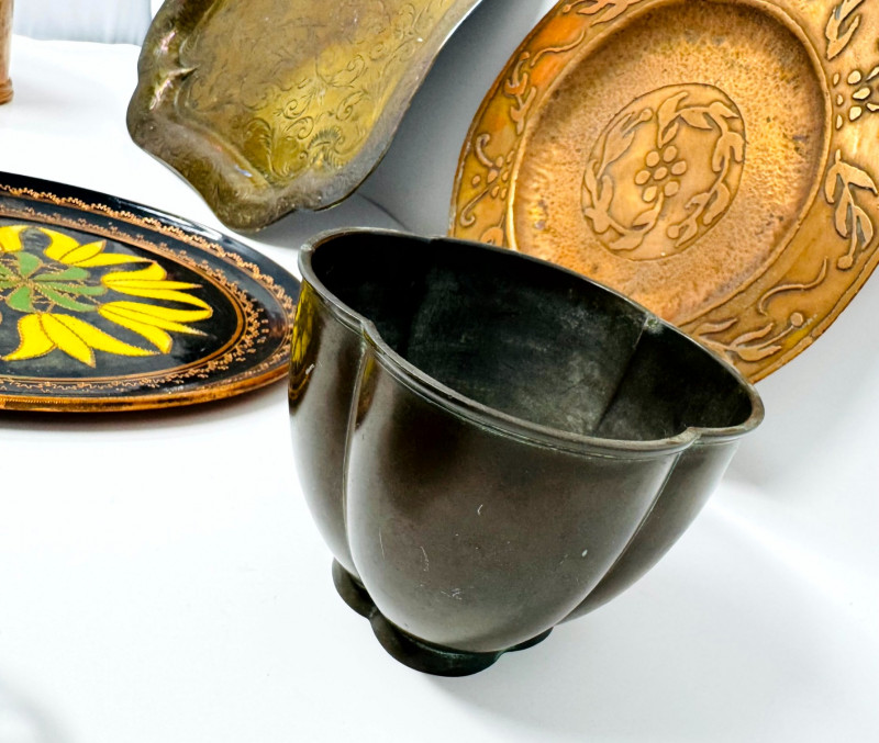 Lot # 32 - Vintage Metal Plates, Bowls & Trays w/ Etched & Painted Designs