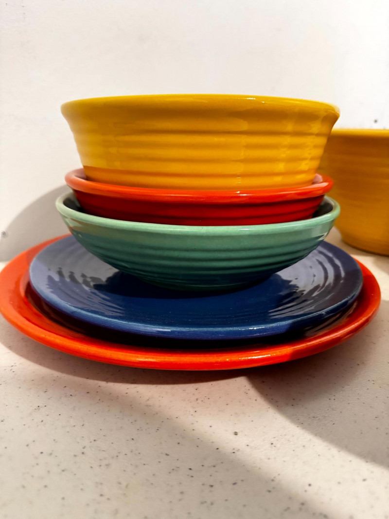 Bauer Los Angeles Colorful Ceramic Dinnerware Set, Mixed Pieces.