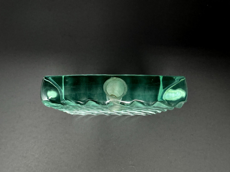 Lot # 46 - Green Art Glass Serving Plate & Ribbed Candle Holder Display Set
