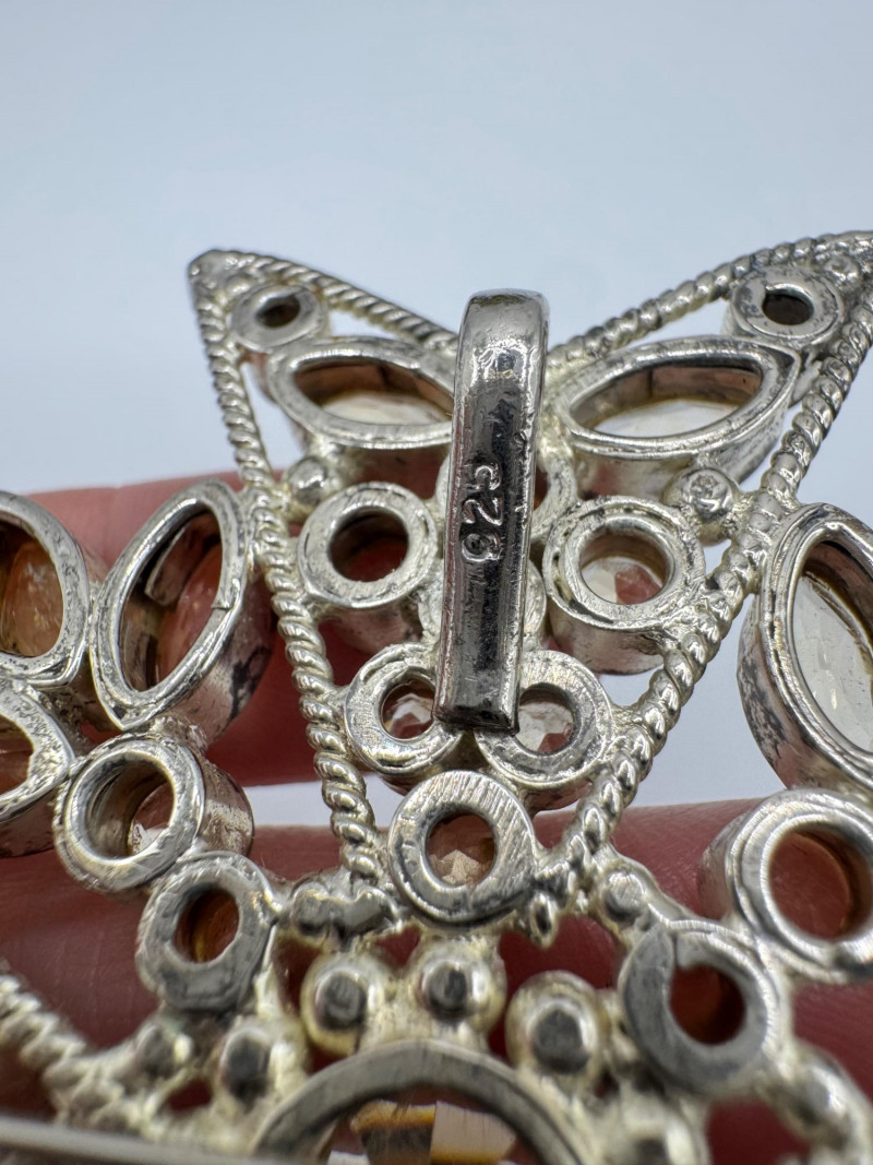 Extra Large Barbara Bixby Sterling Gemstone Star Brooch Pendant 57.19g