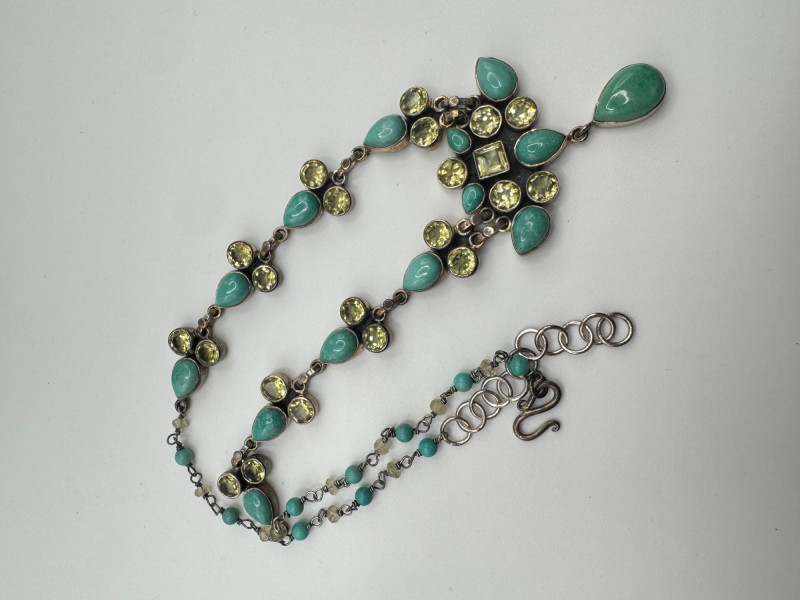 Sterling Silver Semi-Precious Stone Necklace 39.36g.