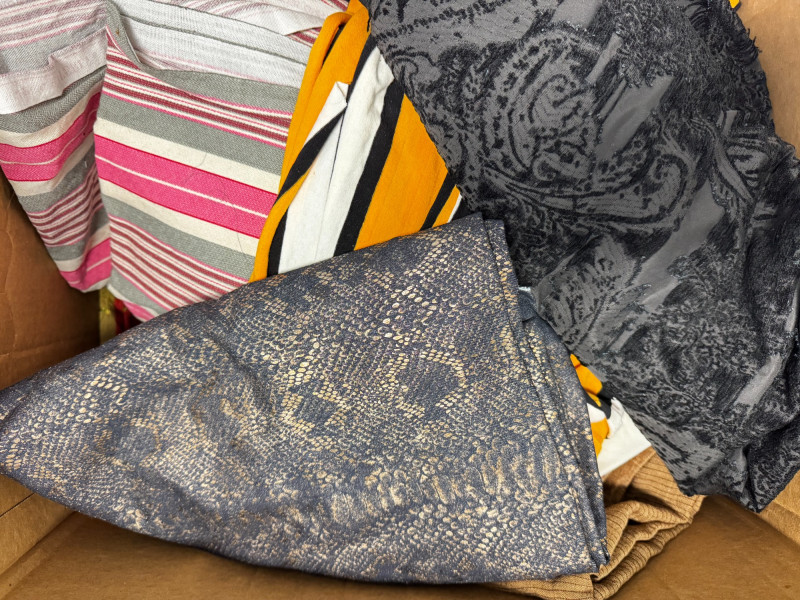 Huge Lot Assorted Fabric – Handwoven & High-Quality Textiles, 5 Boxes.