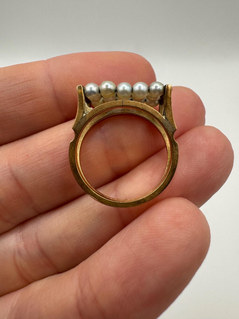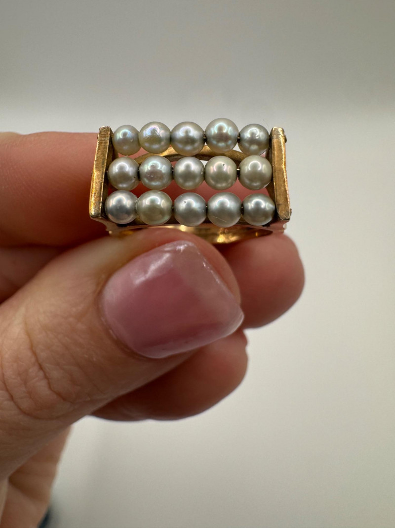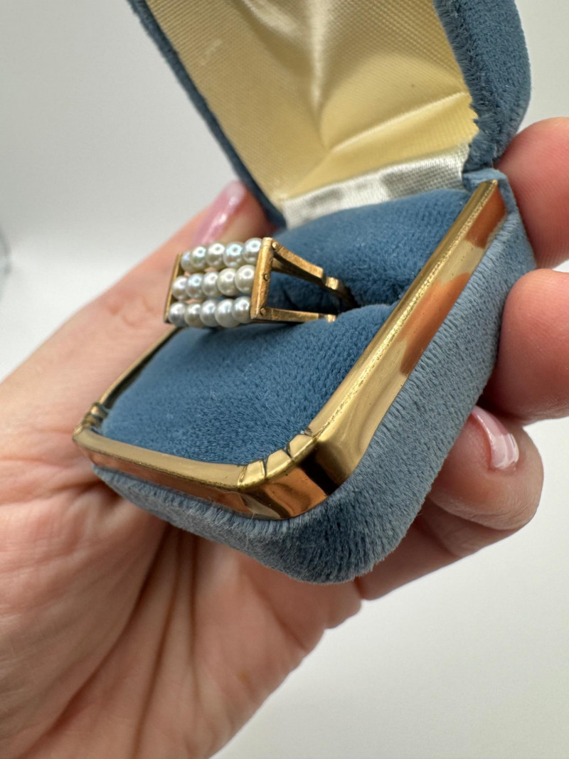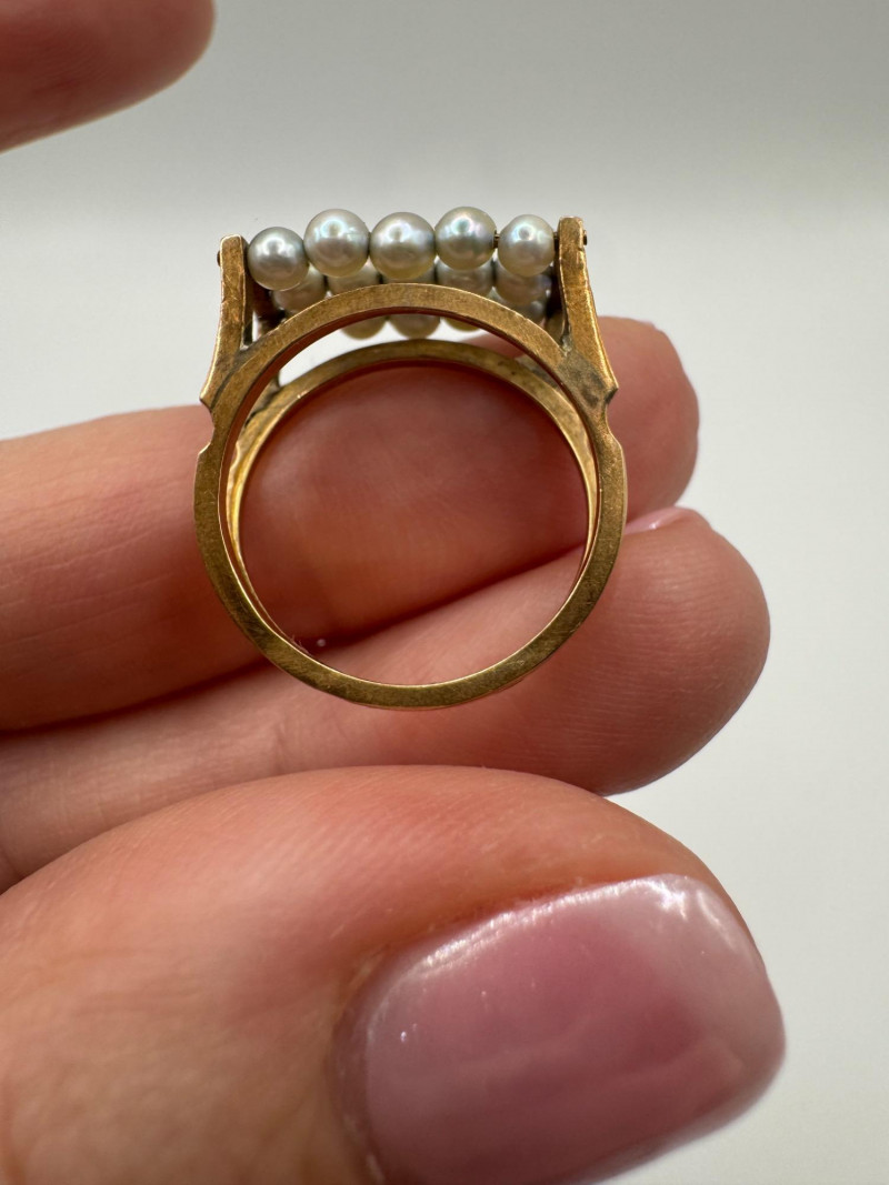 Vintage 14K Gold Ring w/ Pearl Row, Size 5 - 3.54g.
