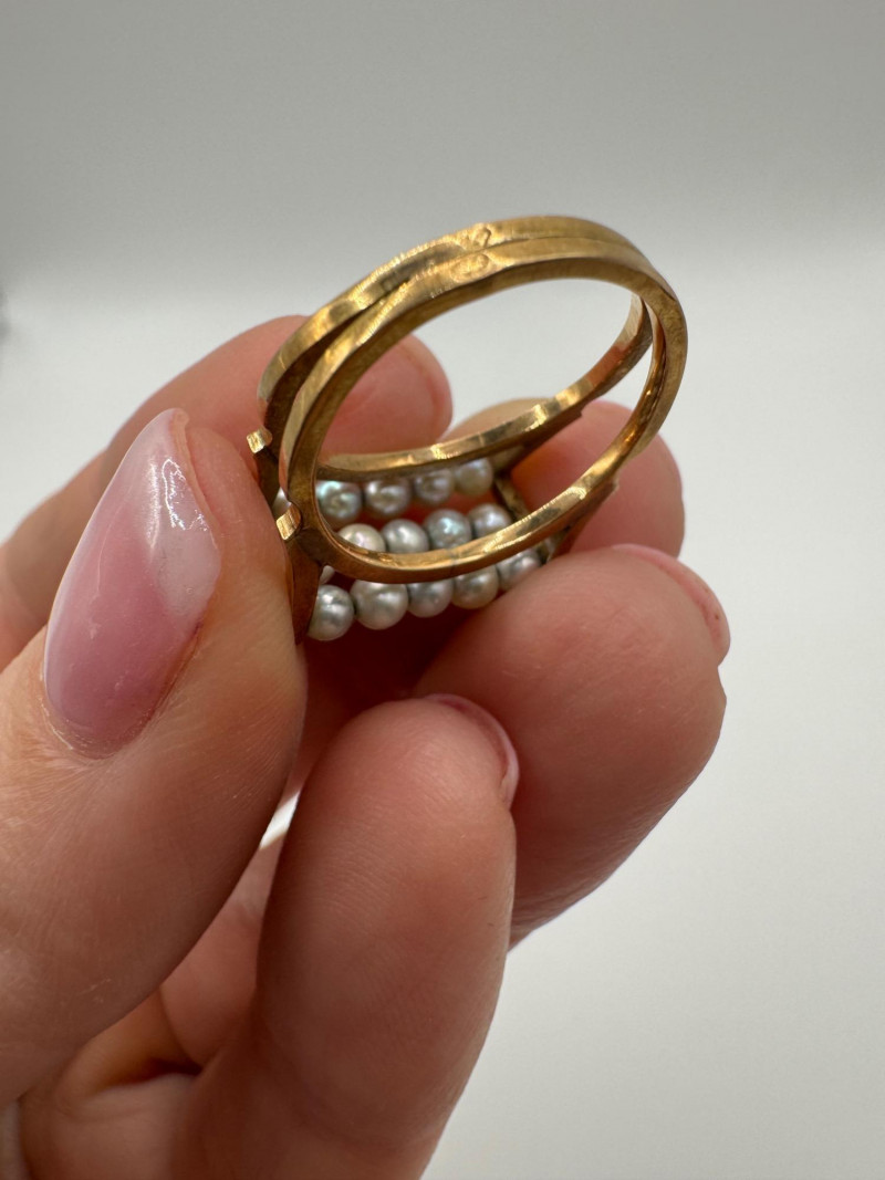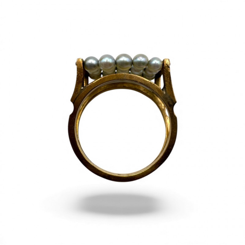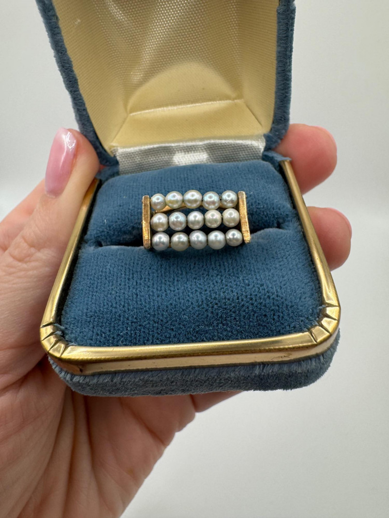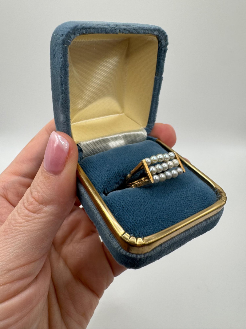 Vintage 14K Gold Ring w/ Pearl Row, Size 5 - 3.54g.