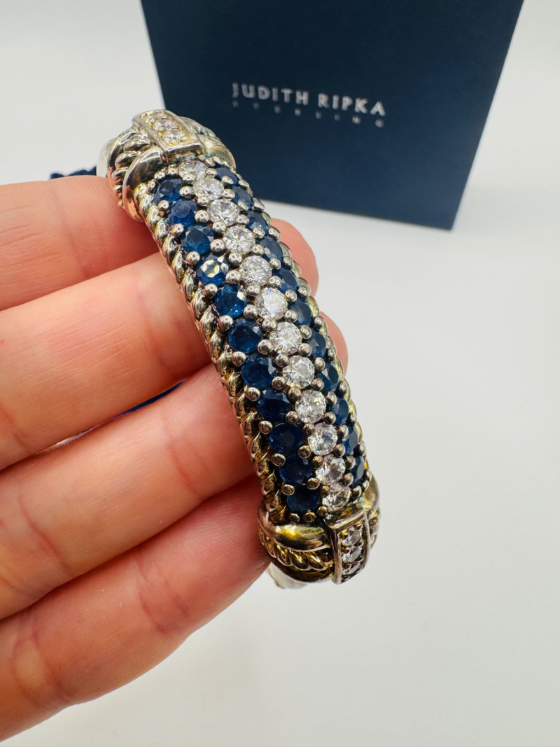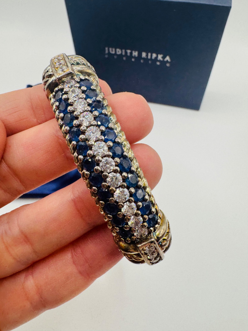 Lot # 66 - Brand New Judith Ripka Sterling Sapphire & Diamonique Cuff 57.86g