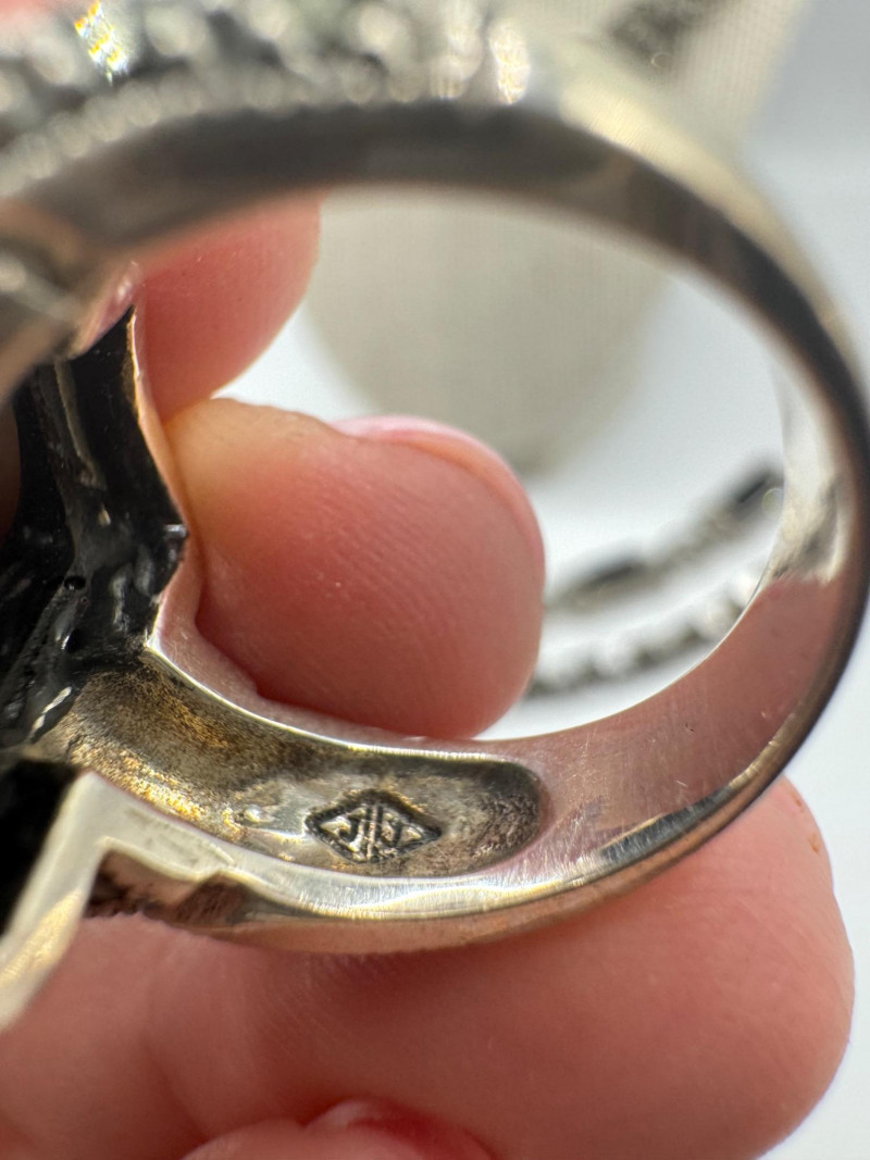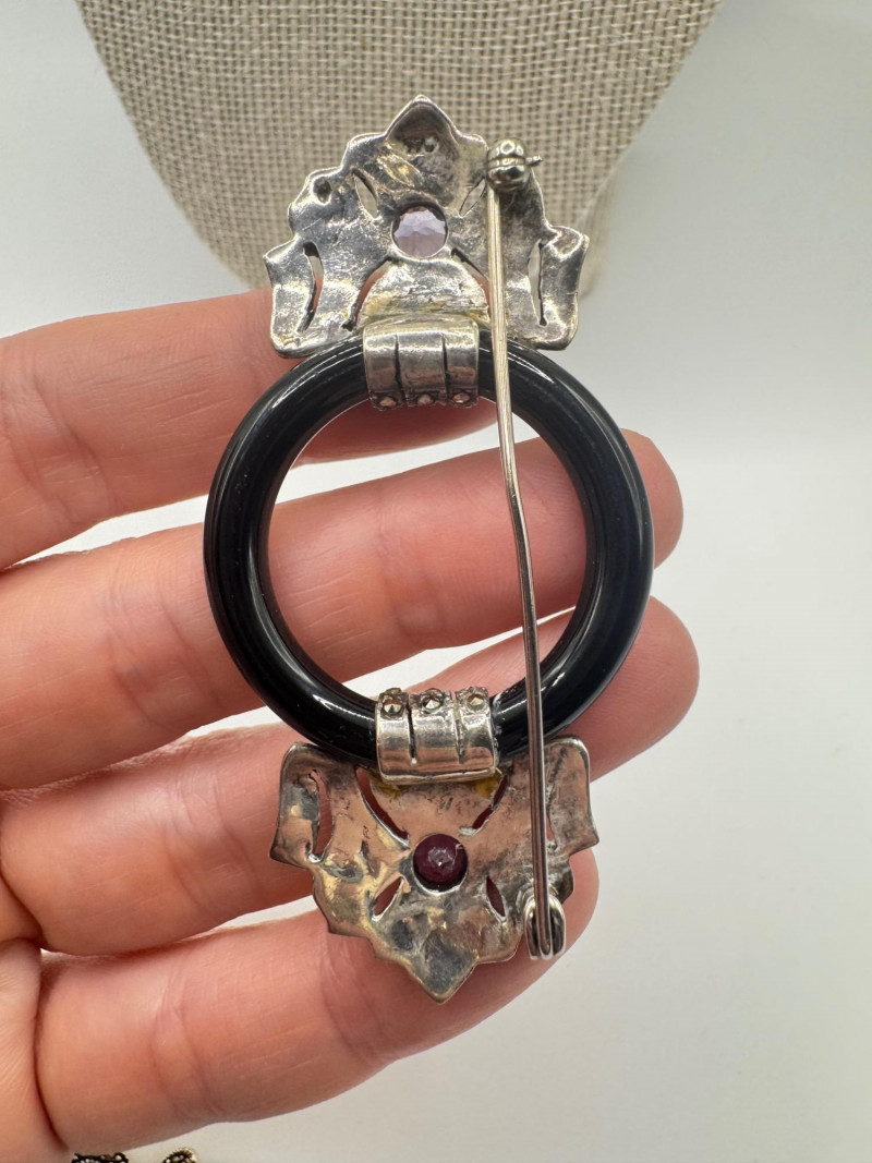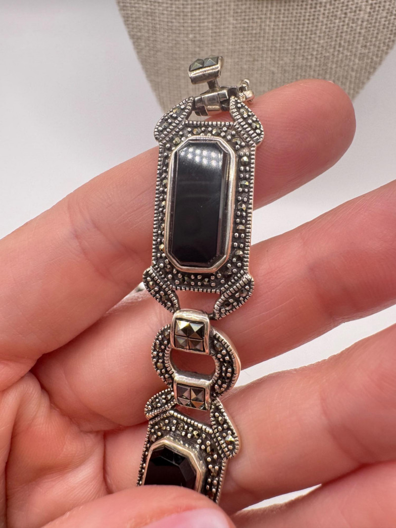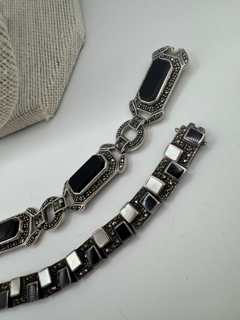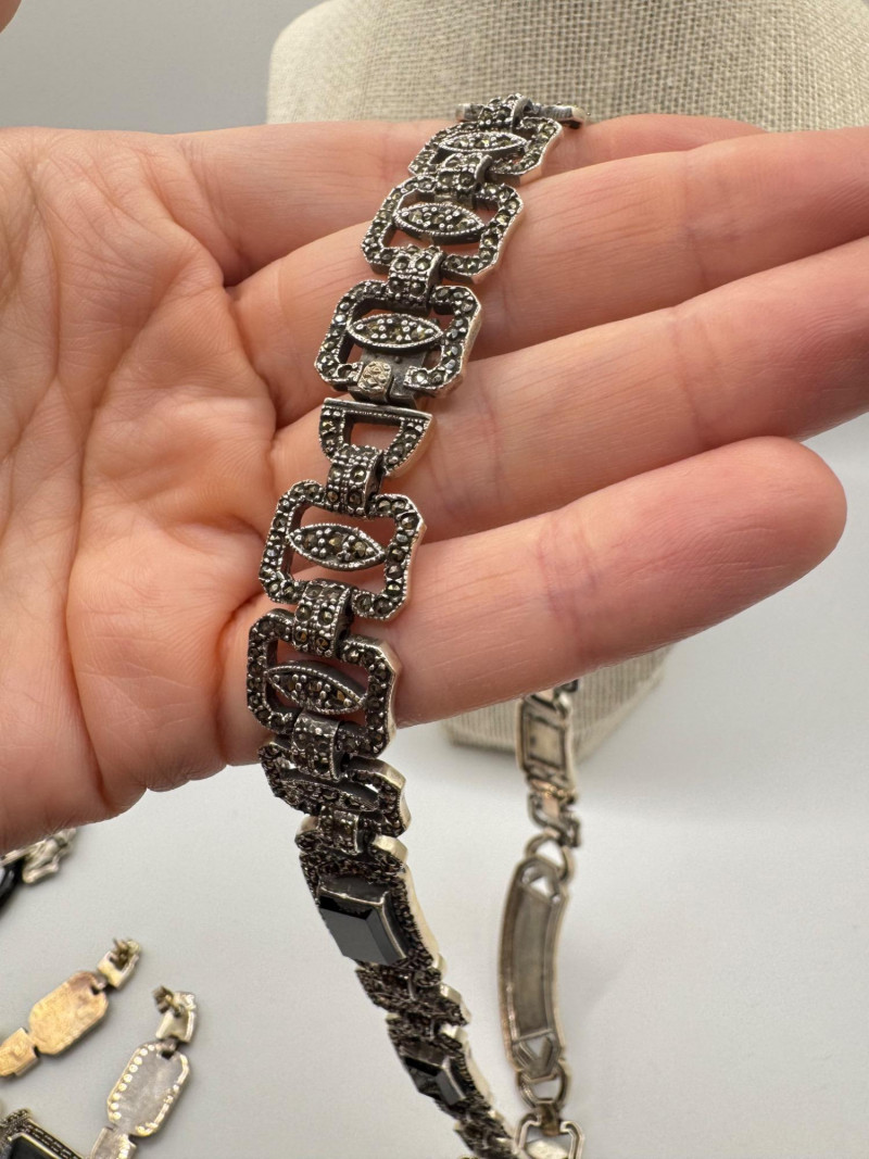 Sterling Silver Marcasite Jewelry Set w/ Onyx, MOP & Amethyst 127.44g