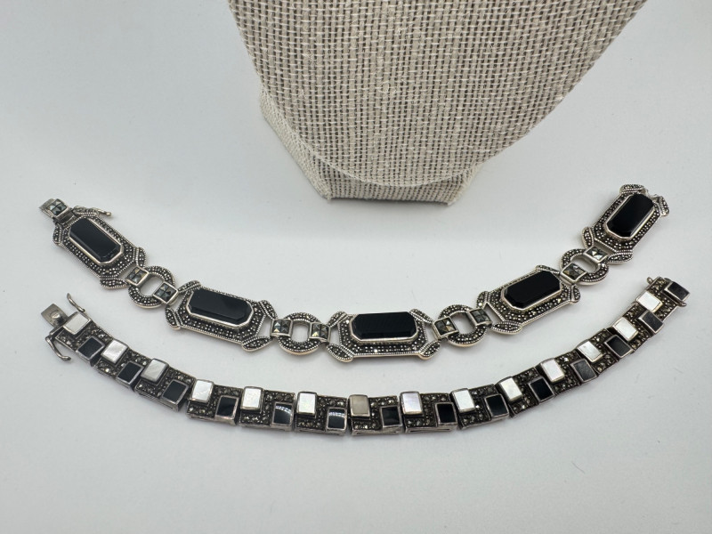 Lot # 67 - Sterling Silver Marcasite Jewelry Set w/ Onyx, MOP & Amethyst 127.44g