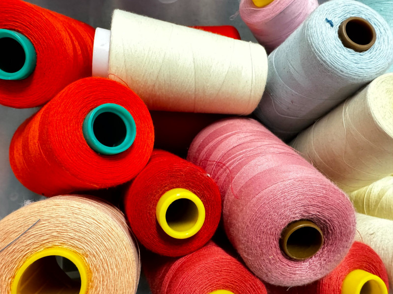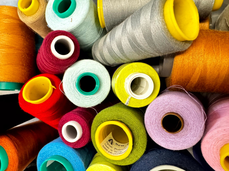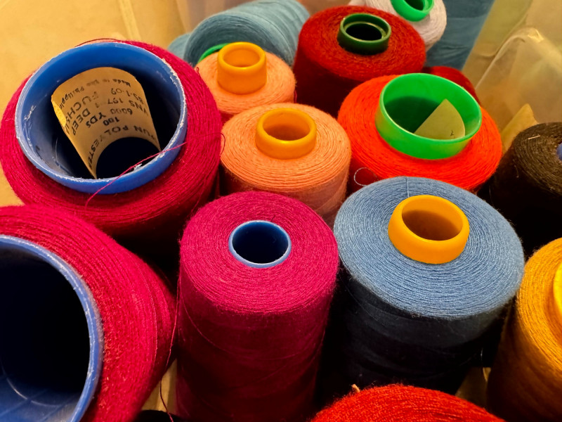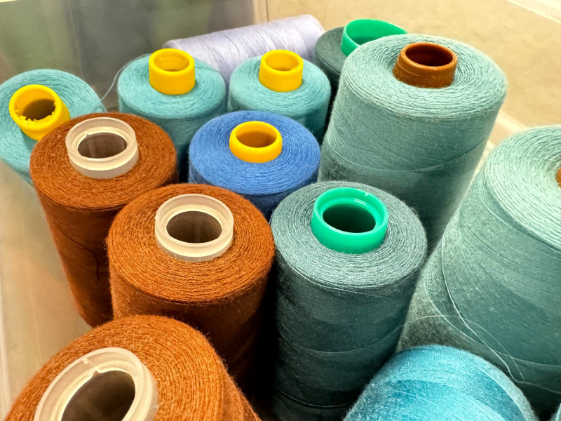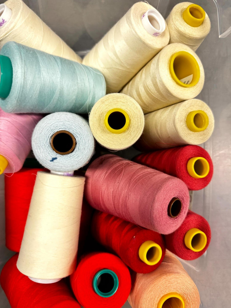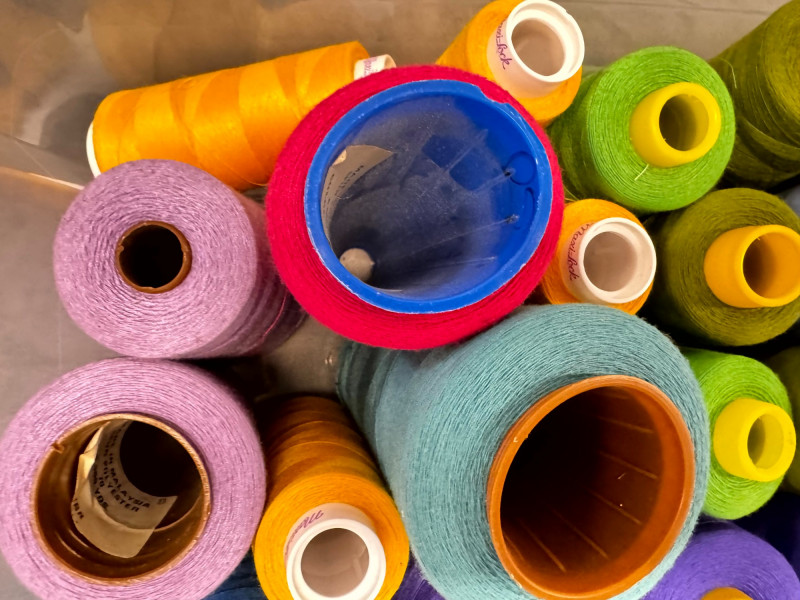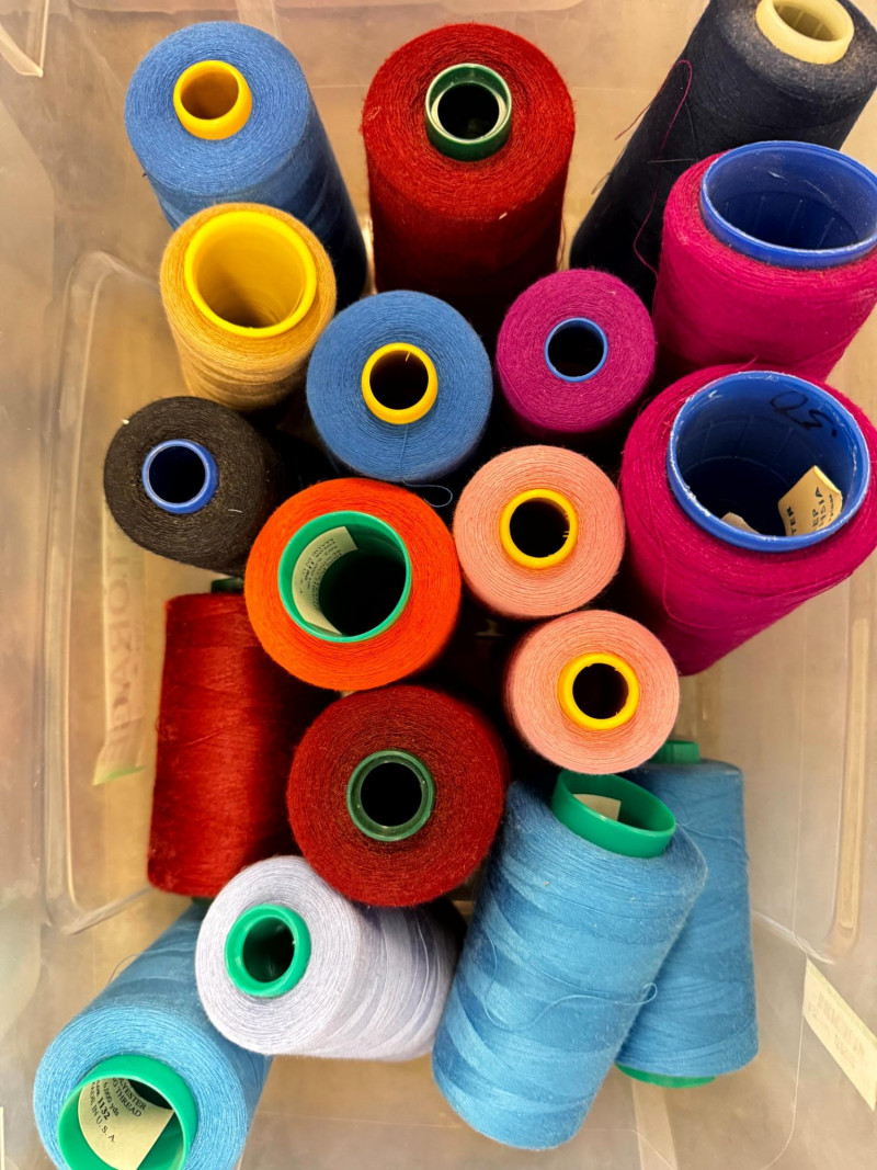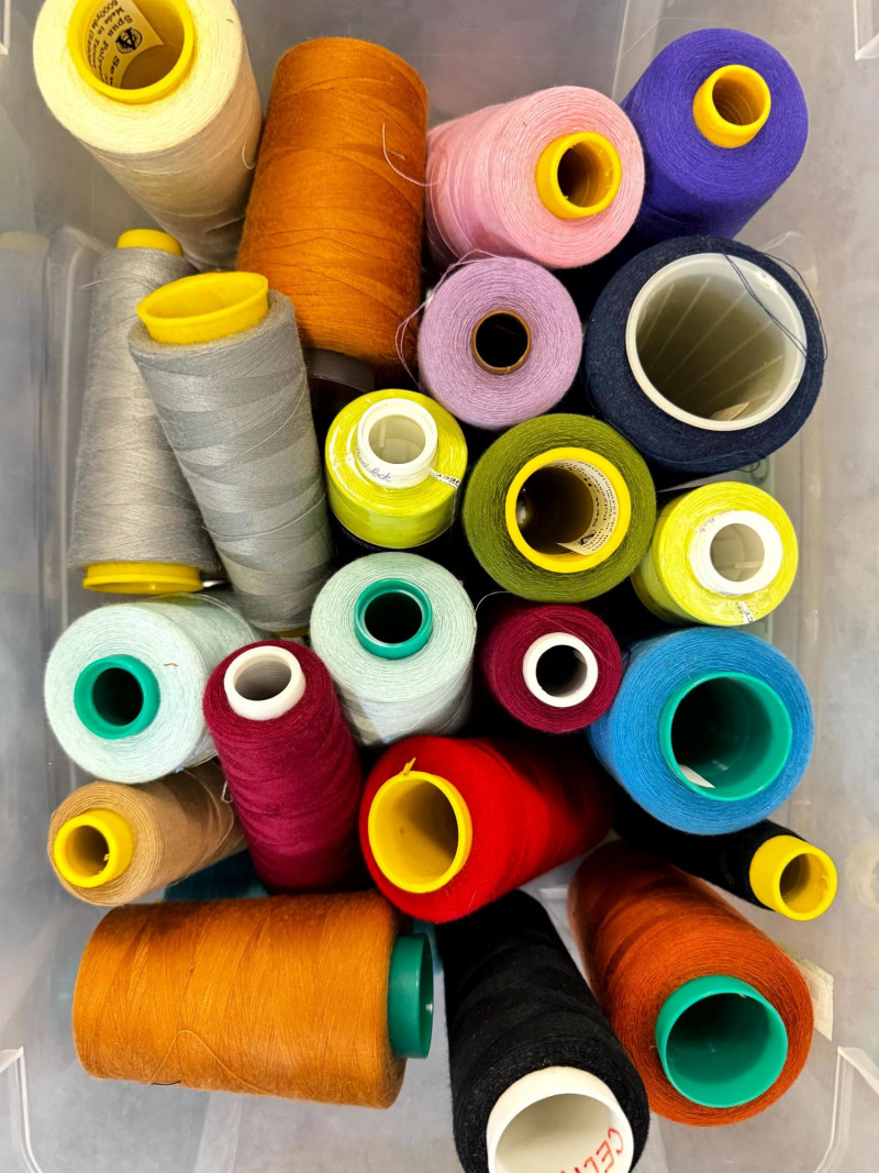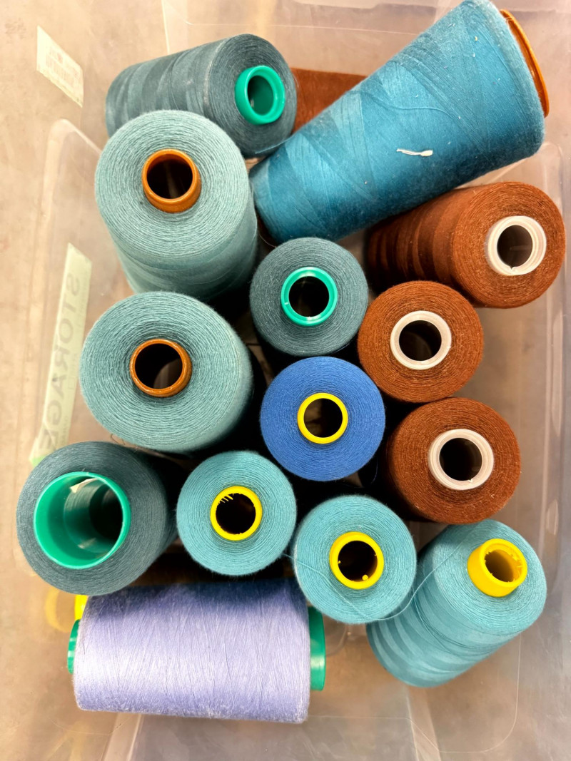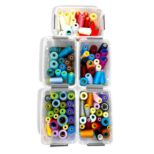 Large Lot of Sewing Thread Spools in Storage Bins – Multicolor.