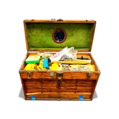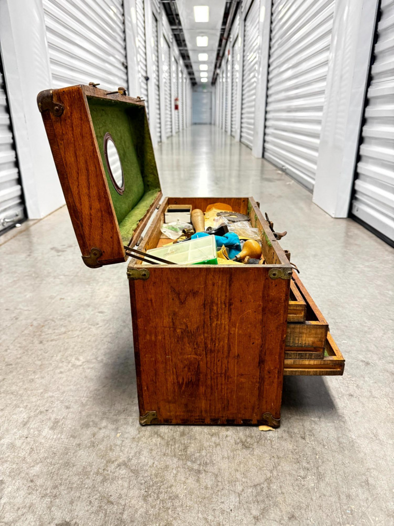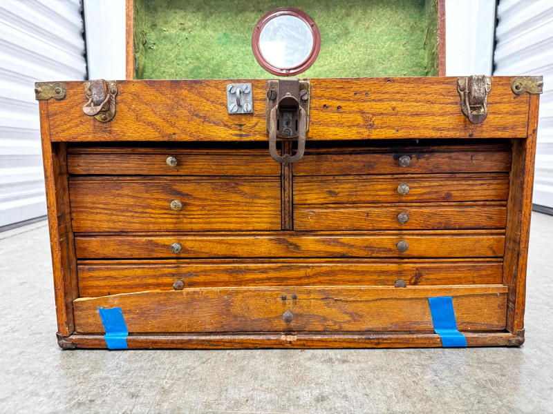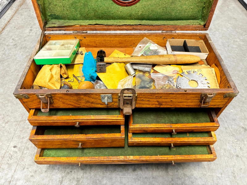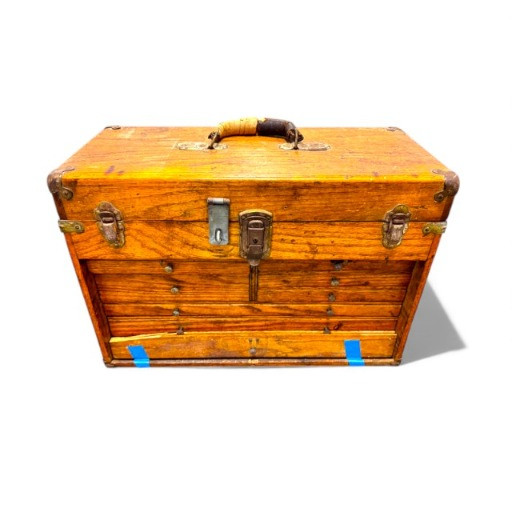 Vintage Wooden Machinist Toolbox w/ Tools.