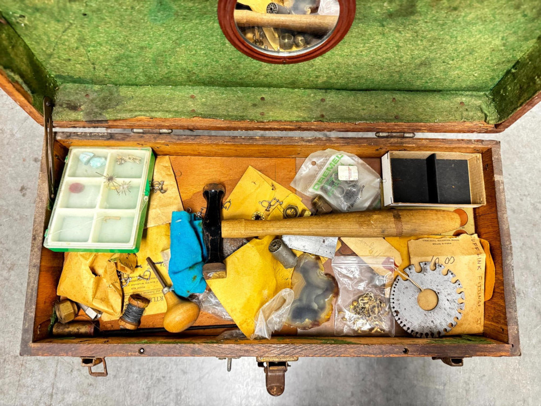 Lot # 76 - Vintage Wooden Machinist Toolbox w/ Tools