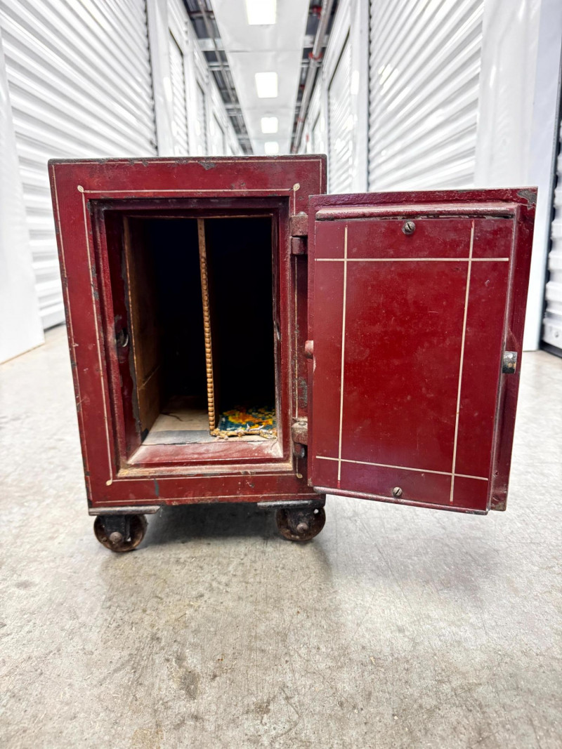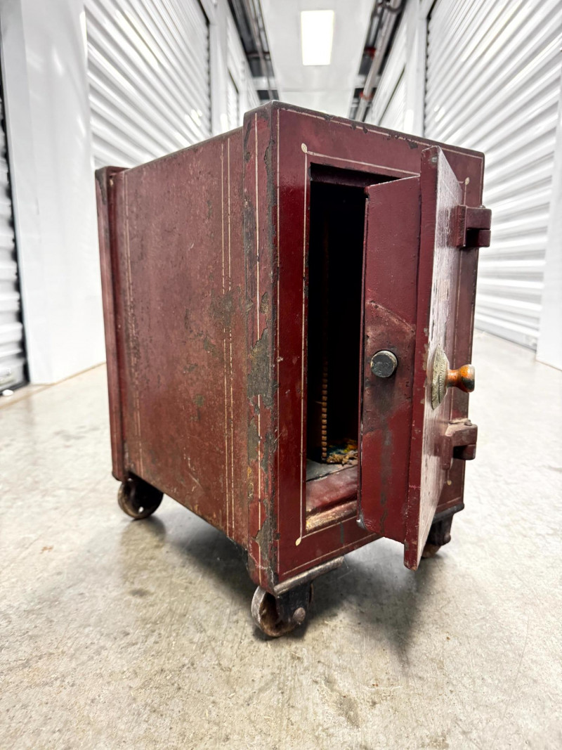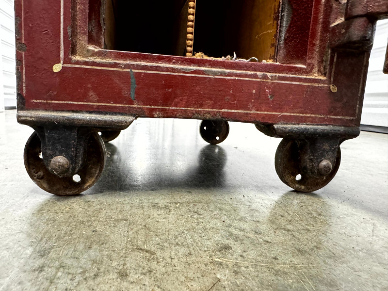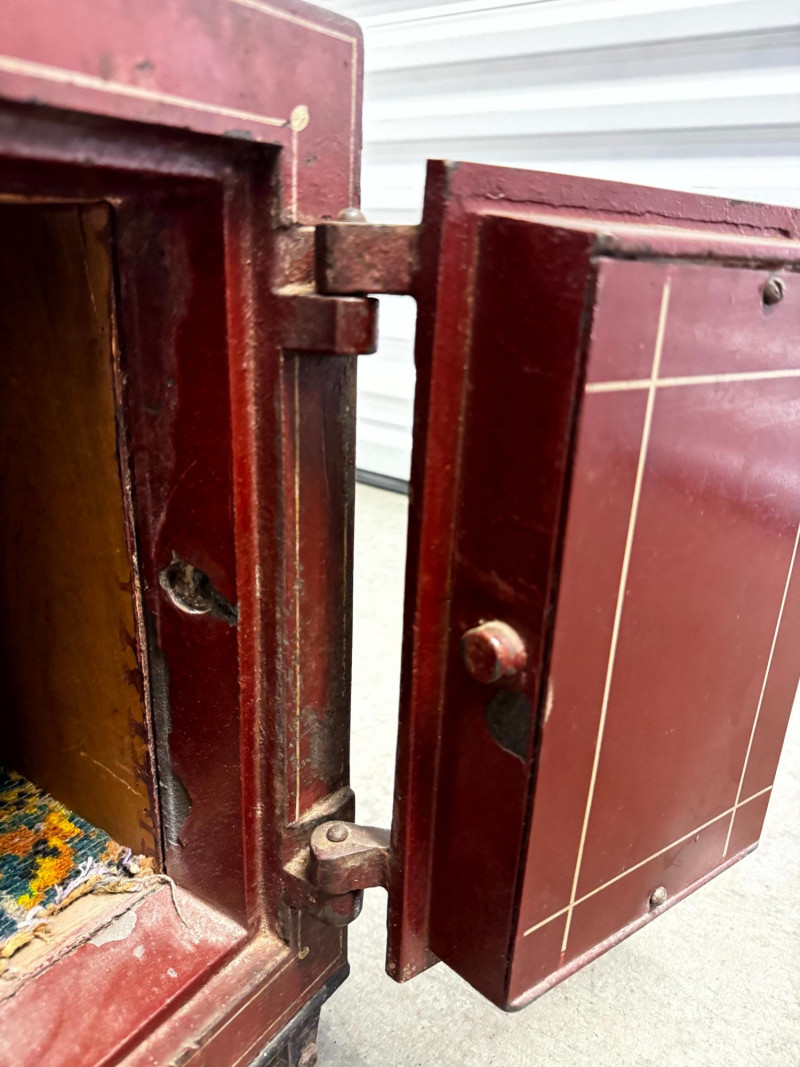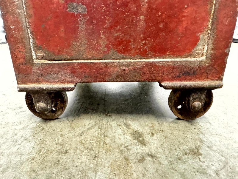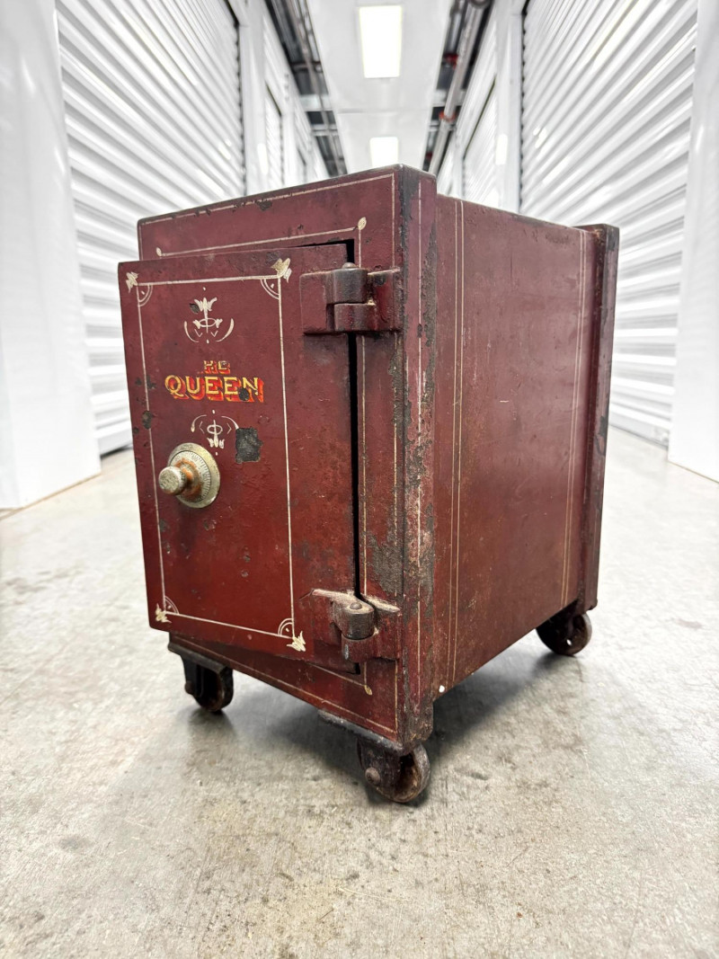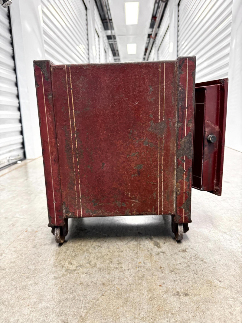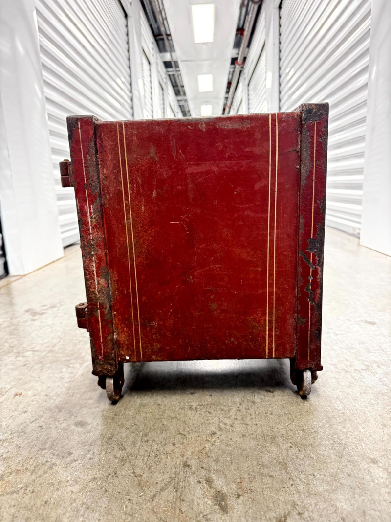 Lot # 77 - Vintage “The Queen” Metal Safe on Wheels – Red Painted Finish