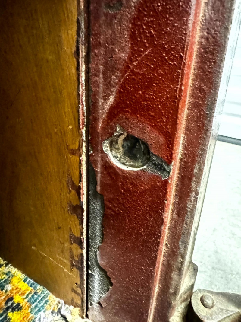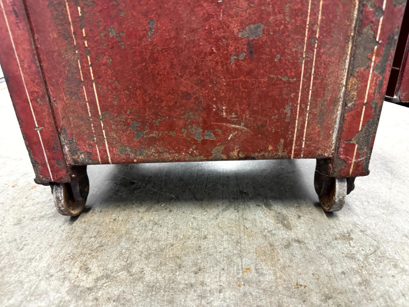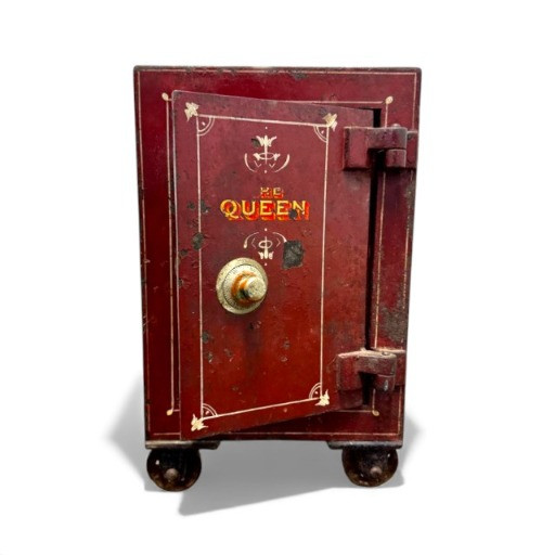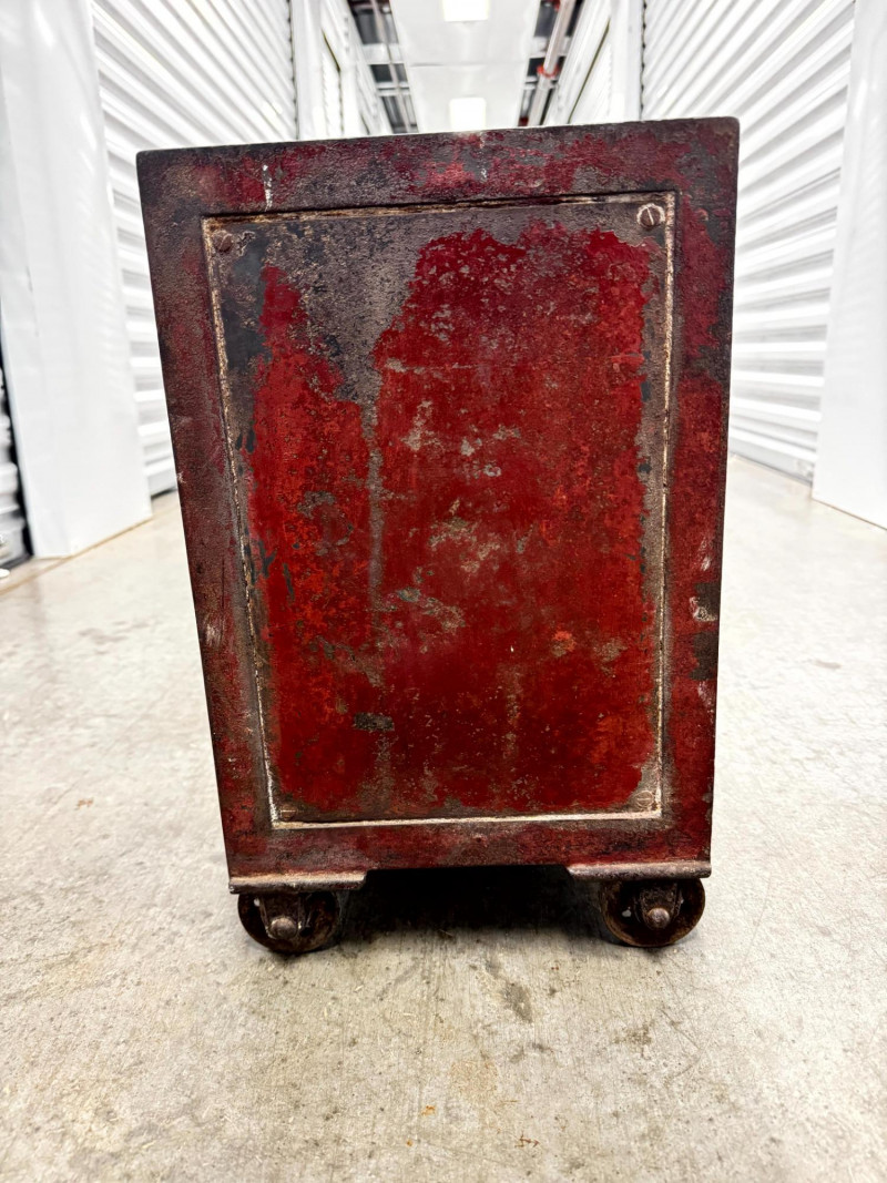 Vintage “The Queen” Metal Safe on Wheels – Red Painted Finish.
