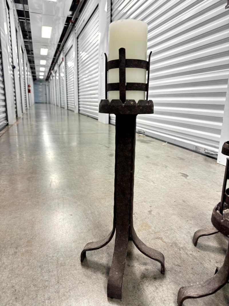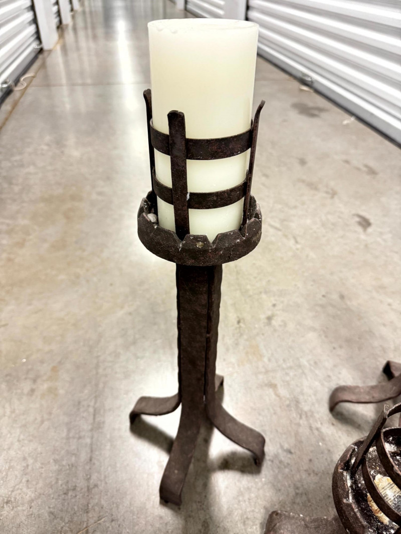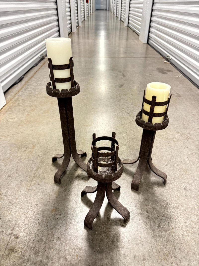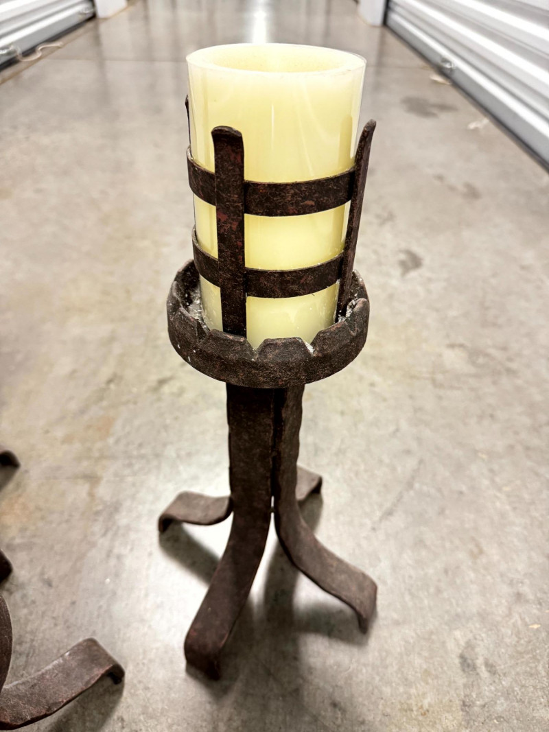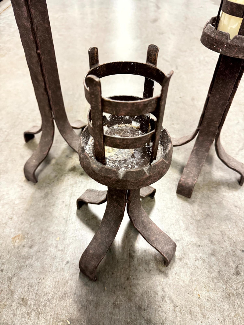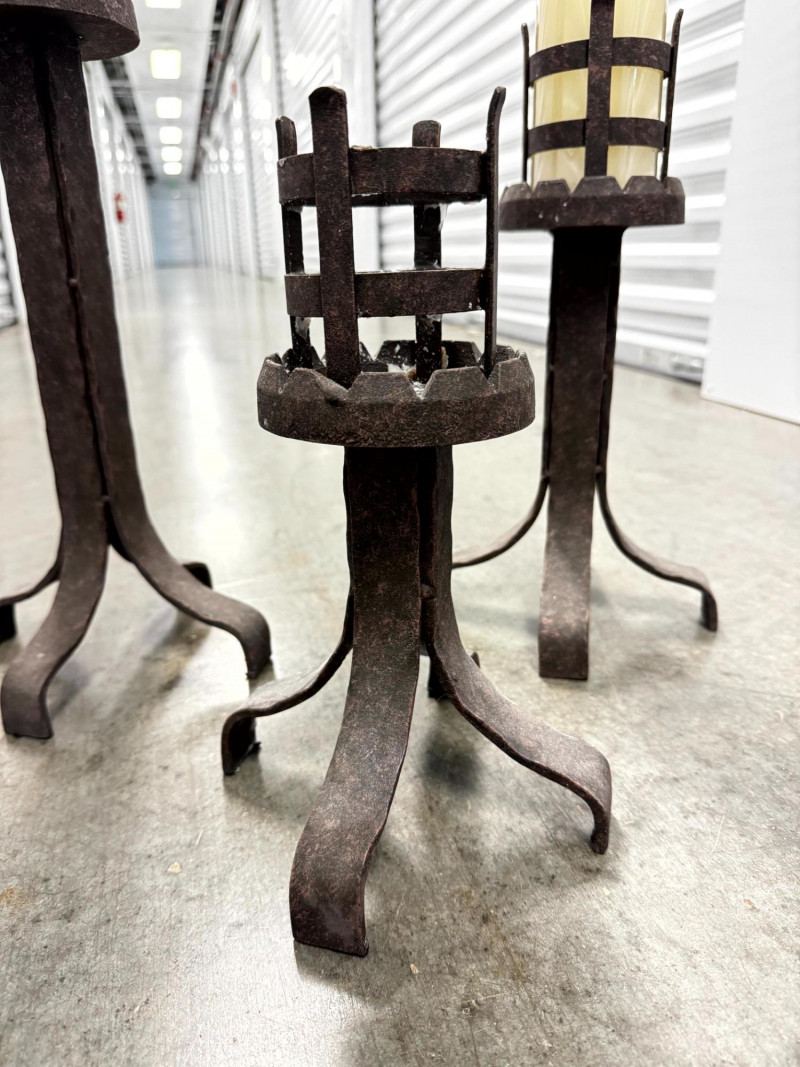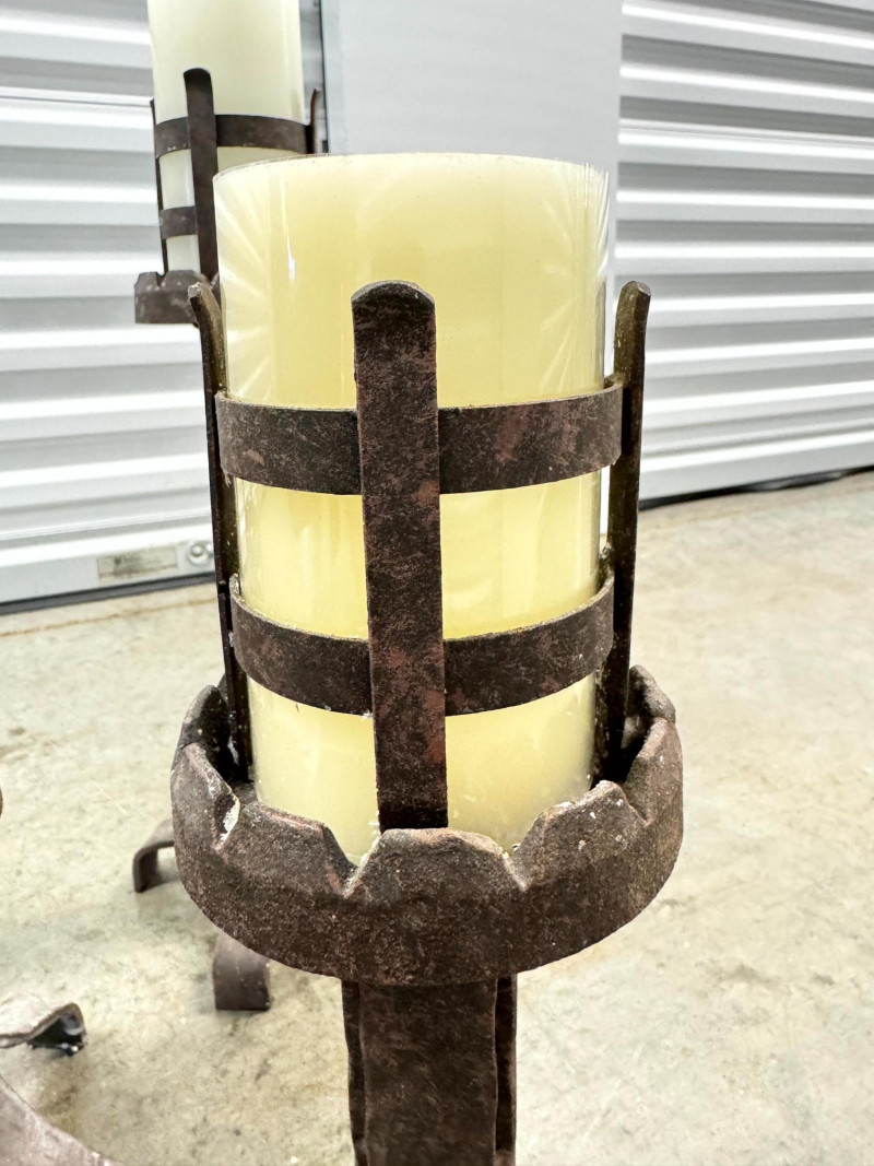 Lot # 78 - Set of 3 Rustic Wrought Iron Pillar Candle Holders