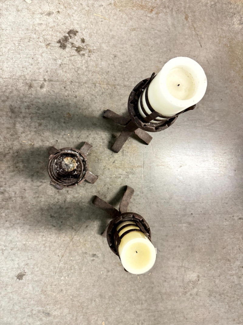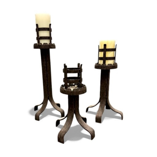 Set of 3 Rustic Wrought Iron Pillar Candle Holders.
