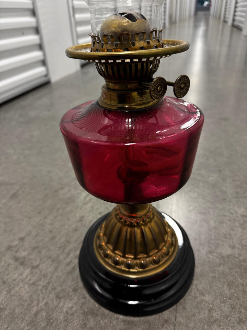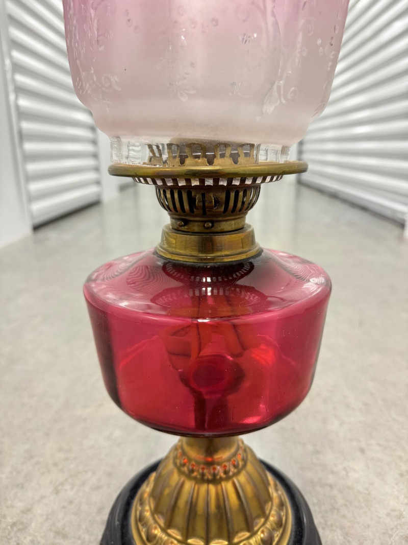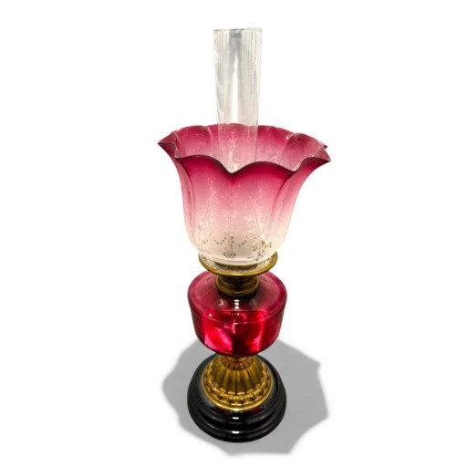 Griffin Brand Czech Cranberry Glass Oil Lamp – Victorian Style.