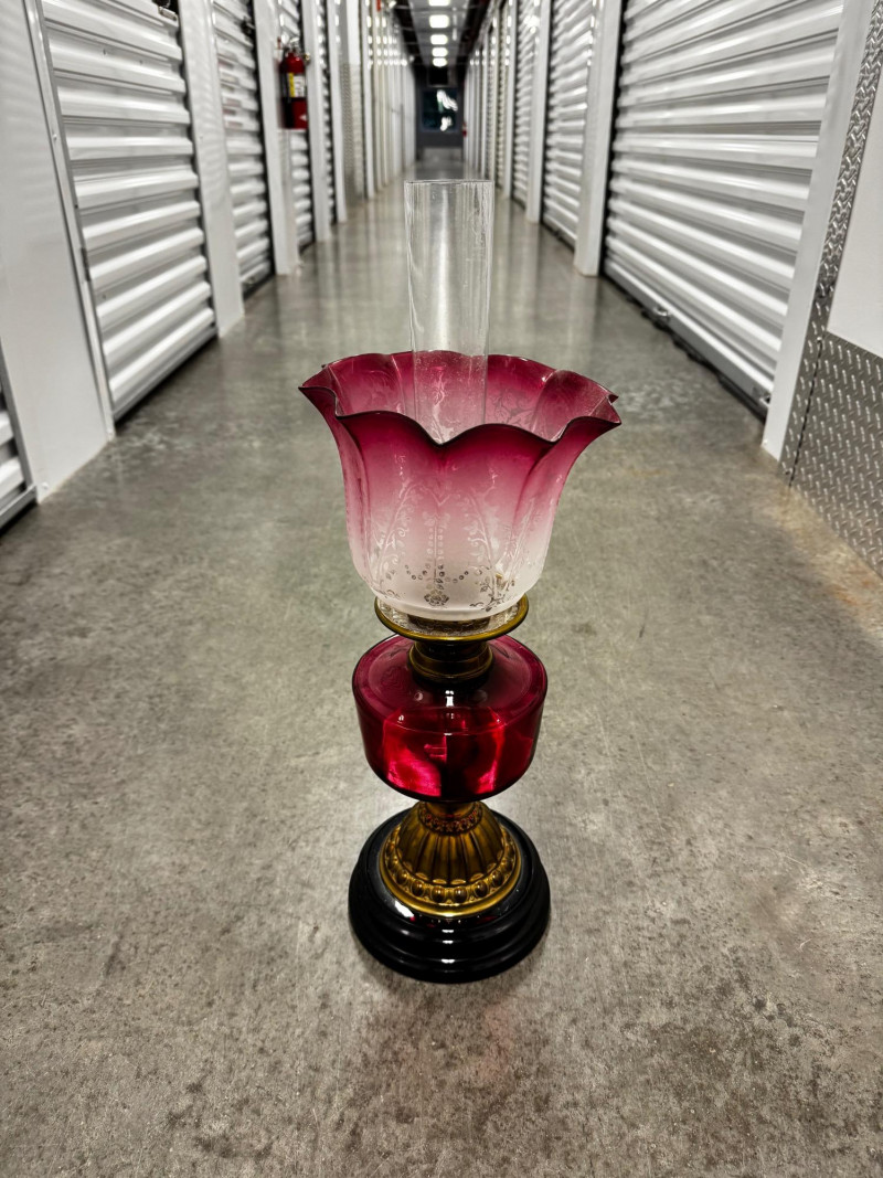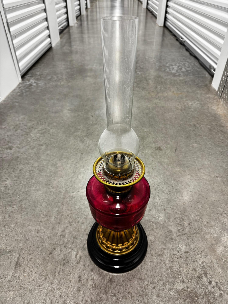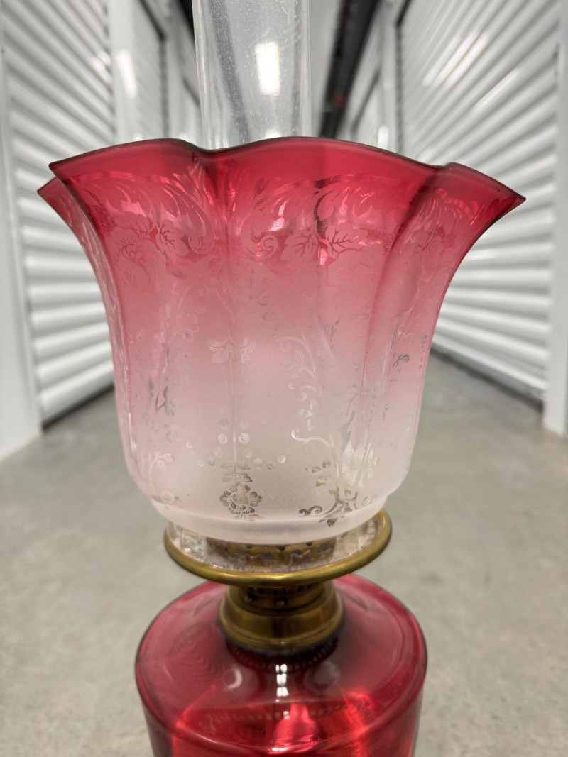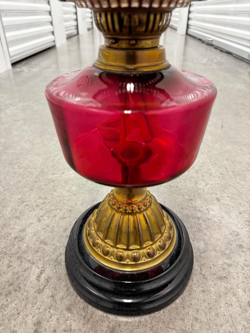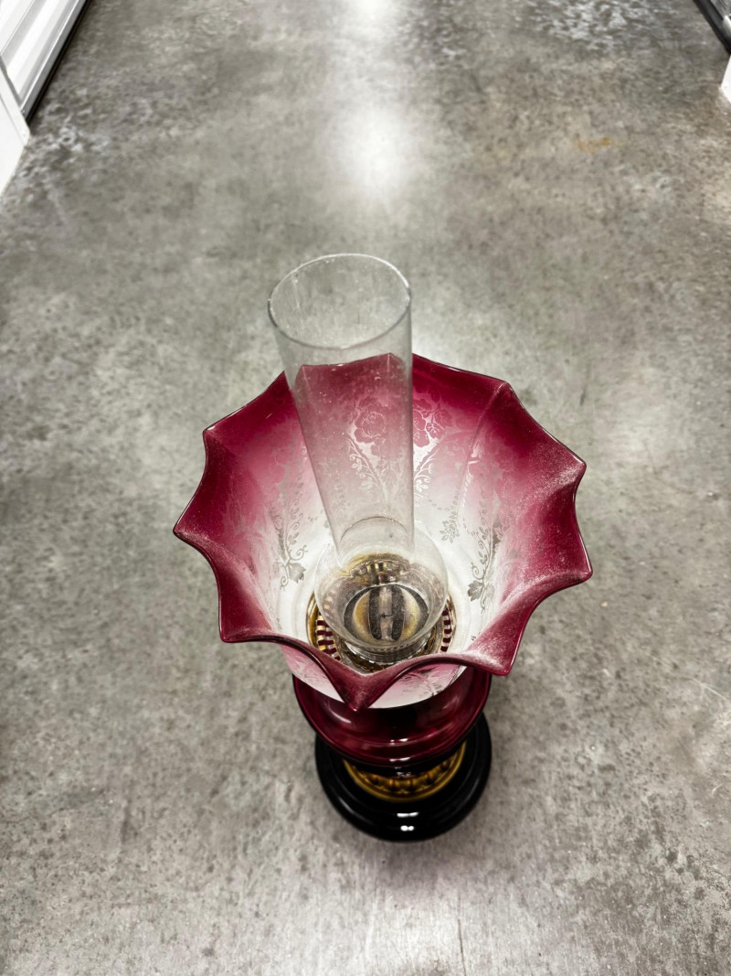 Lot # 82 - Griffin Brand Czech Cranberry Glass Oil Lamp – Victorian Style