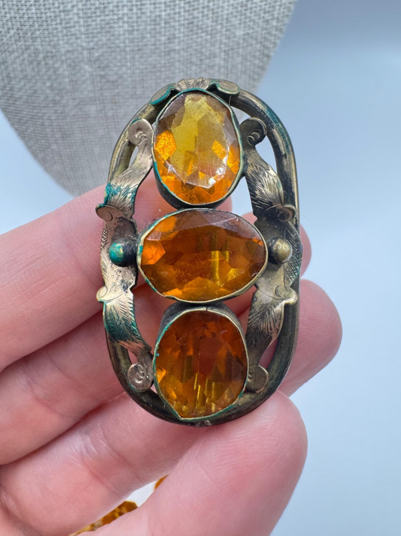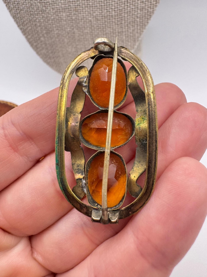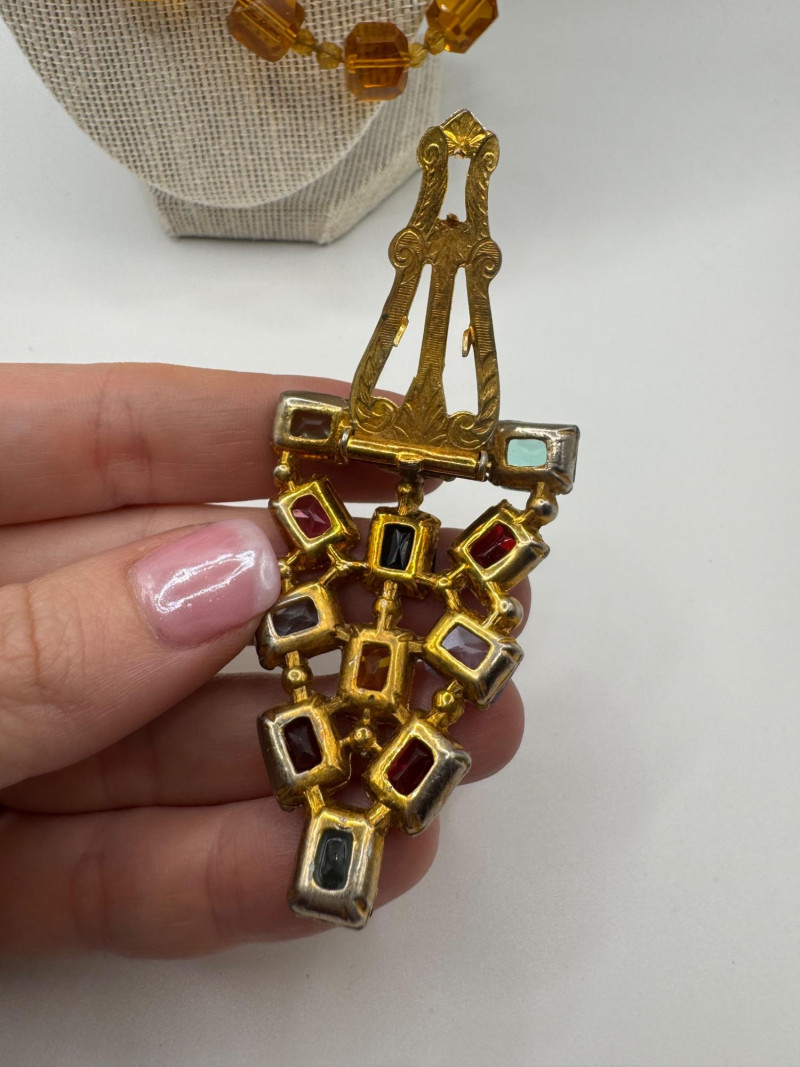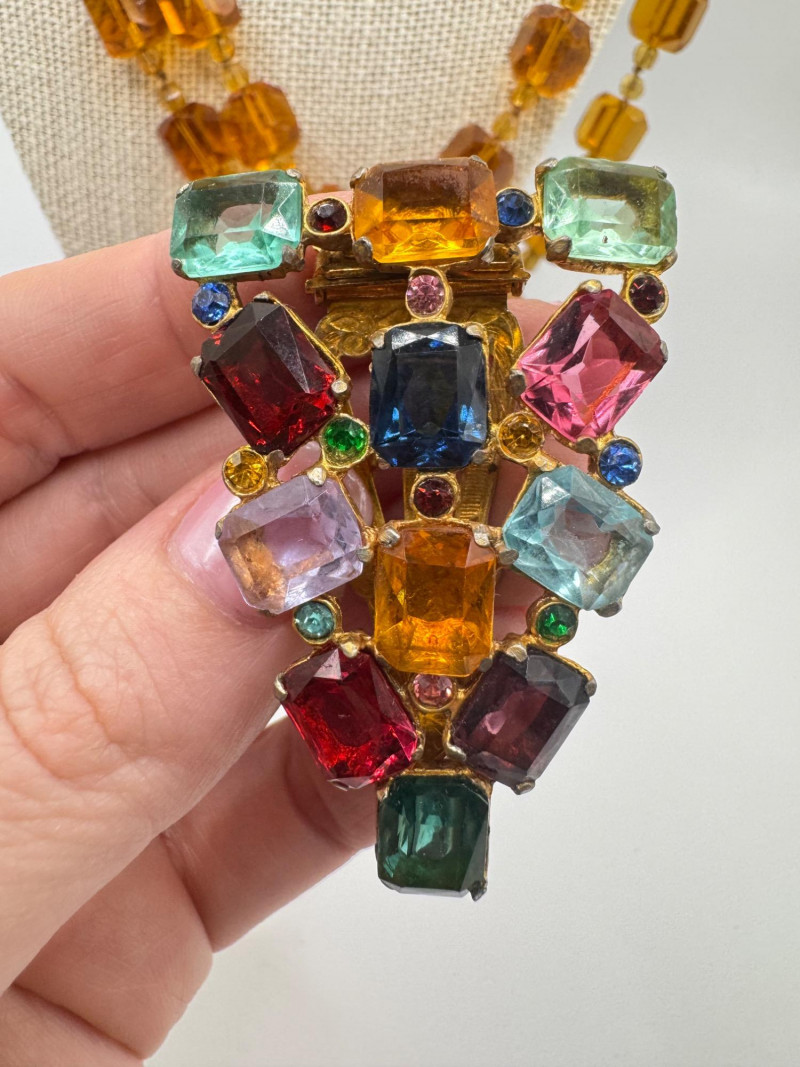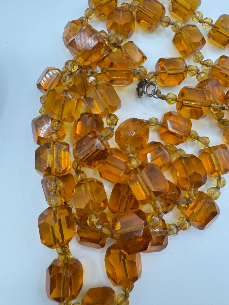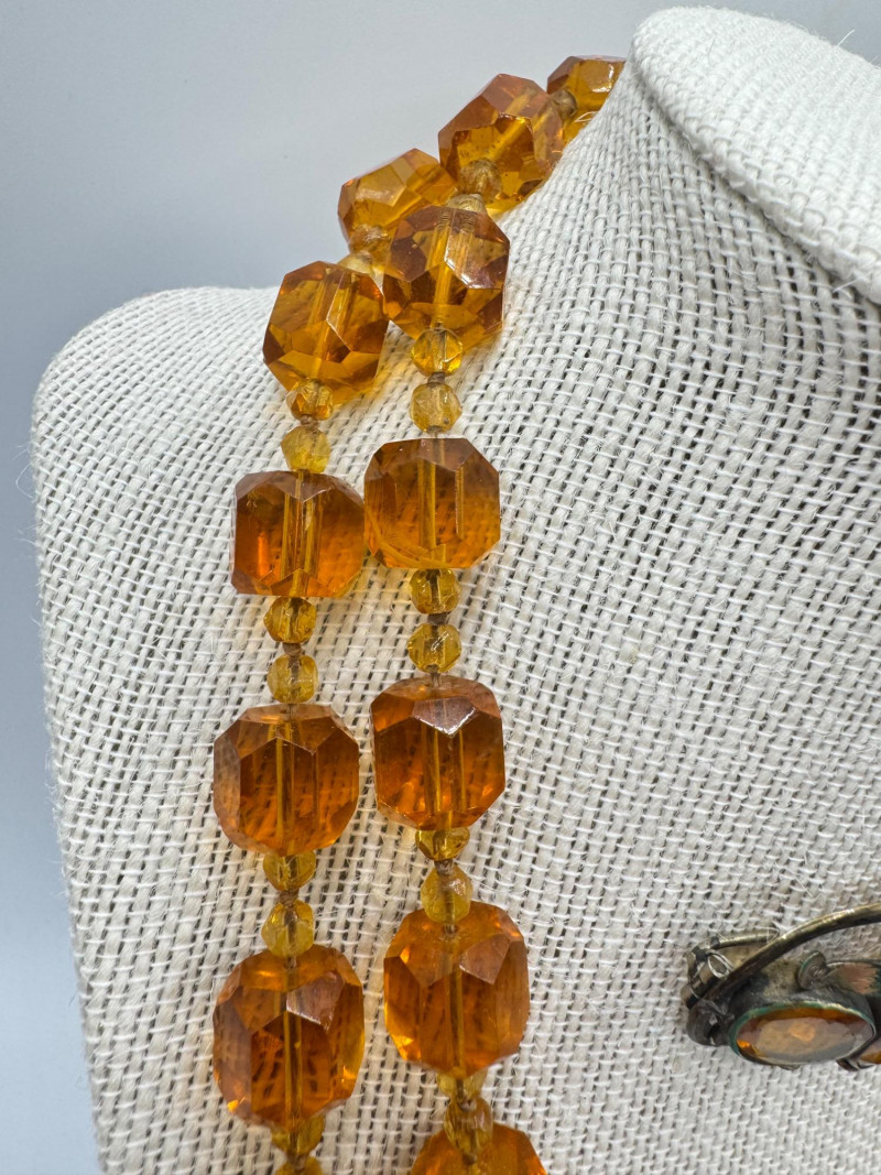 Amber Glass Bead Necklaces, Brooch & Vintage Multigem Shoe Clip.