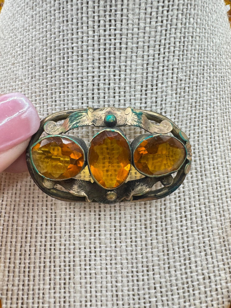 Lot # 85 - Amber Glass Bead Necklaces, Brooch & Vintage Multigem Shoe Clip
