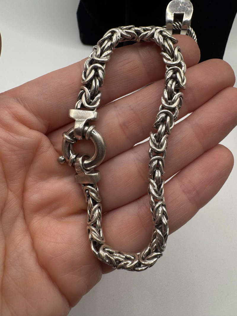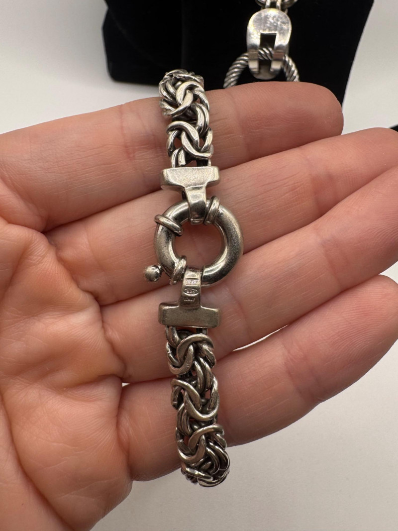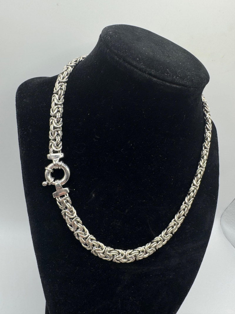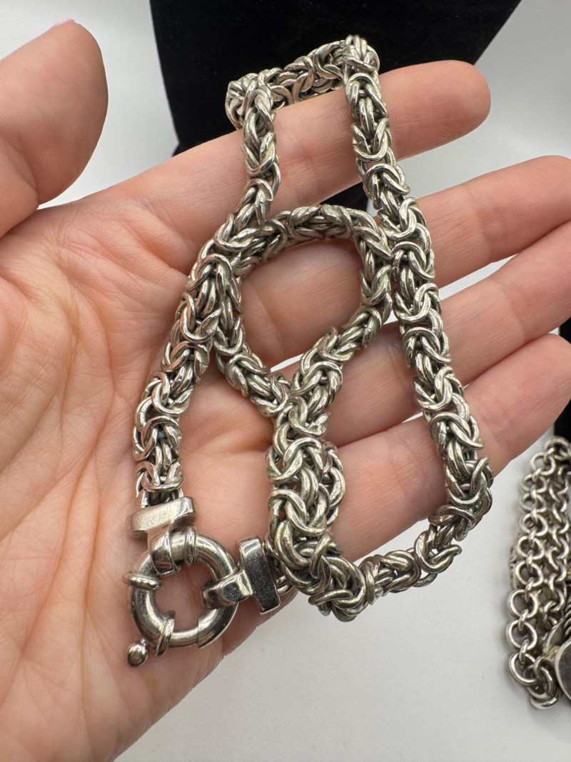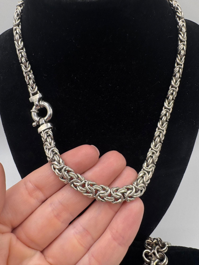 Chunky Set of Sterling Silver Necklace & Bracelets - 192.08g Total. Matching Italian Byzantine chain necklace and bracelet, both marked 925 Italy General Disclaimer:All jewelry in this auction is sold as-is. Metals and gemstones have not been tested unless specified. No guarantees are made regarding metal purity, gemstone authenticity, or origin. No refunds based on identification or quality.