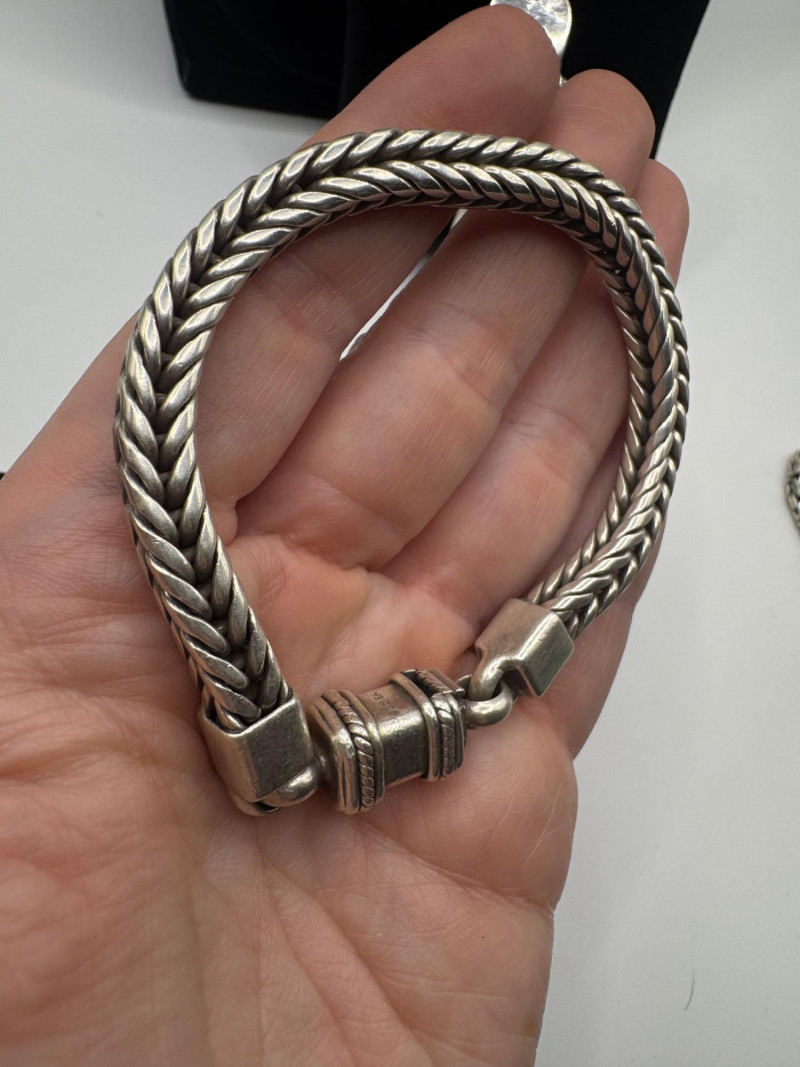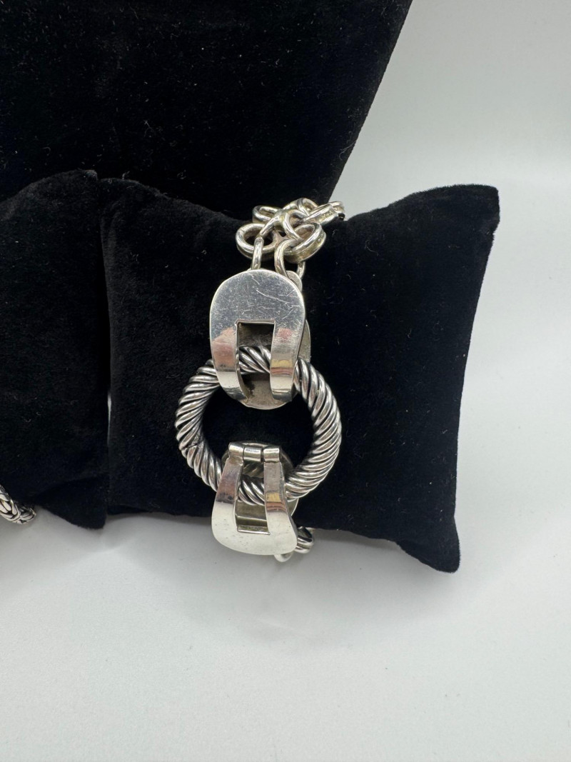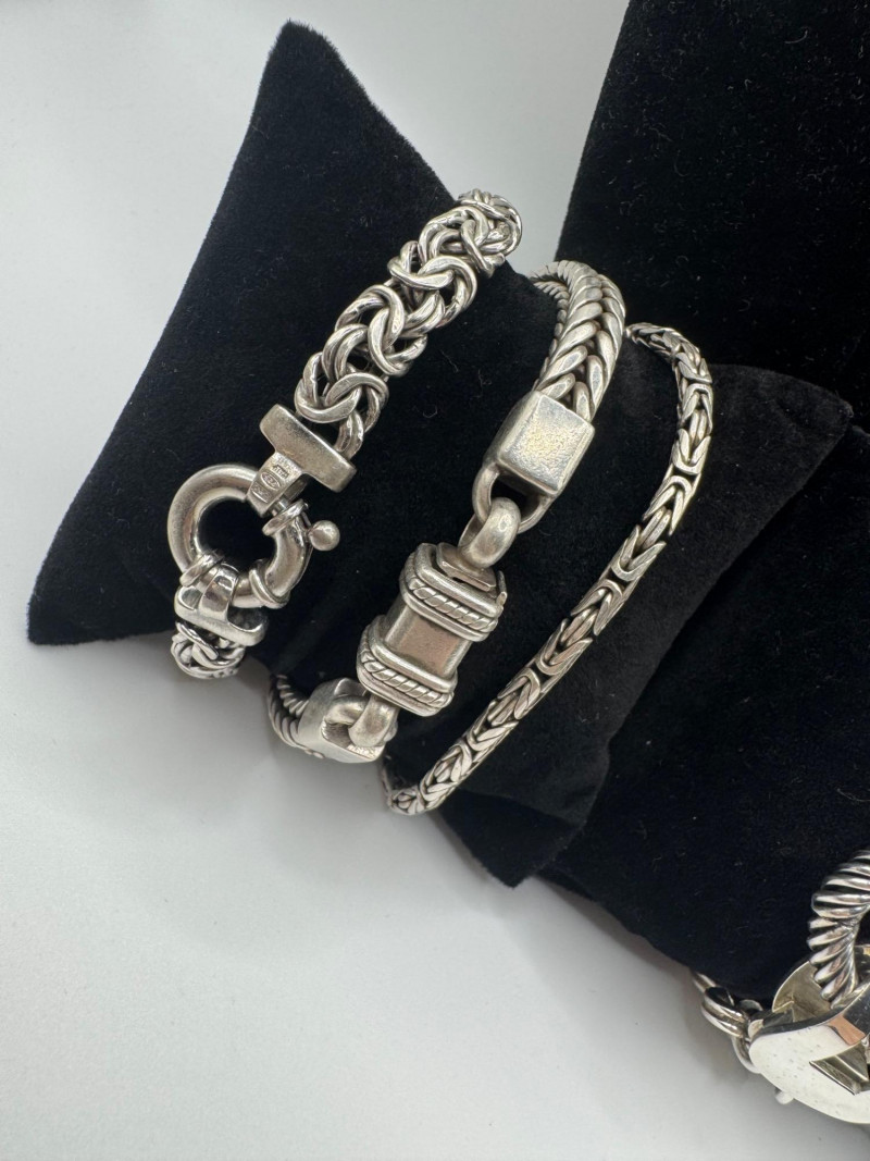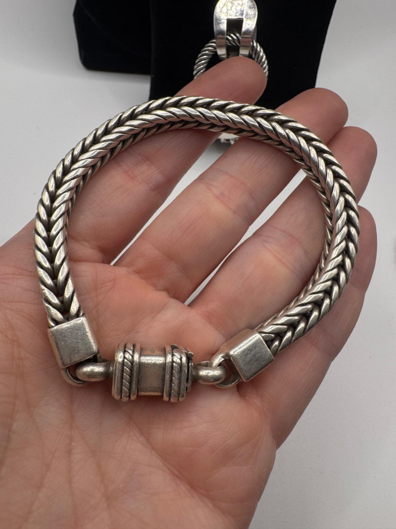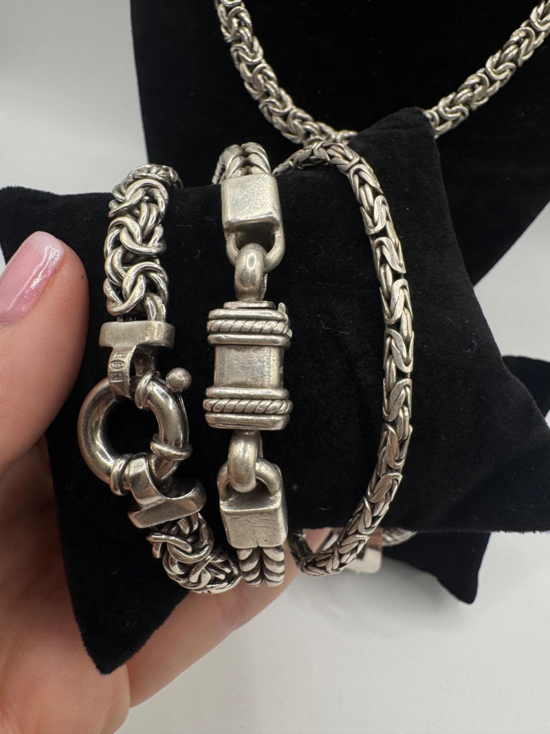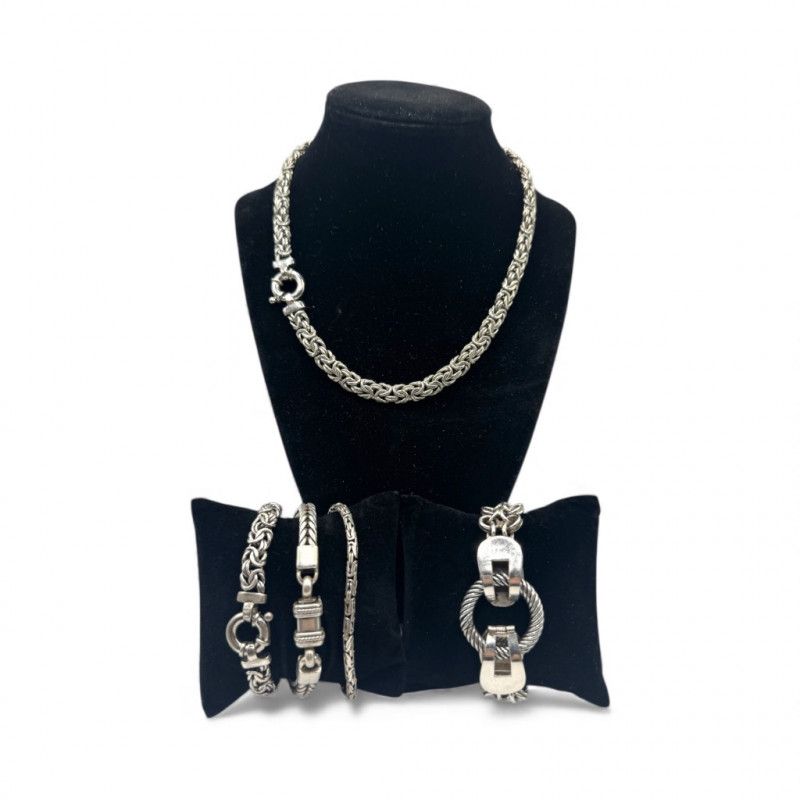 Lot # 87 - Chunky Set of Sterling Silver Necklace & Bracelets - 192.08g Total