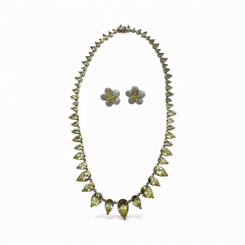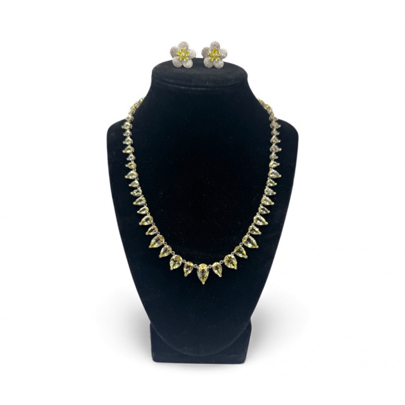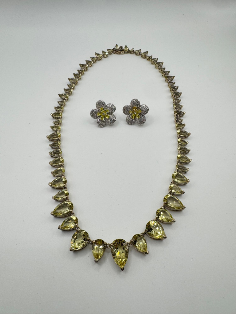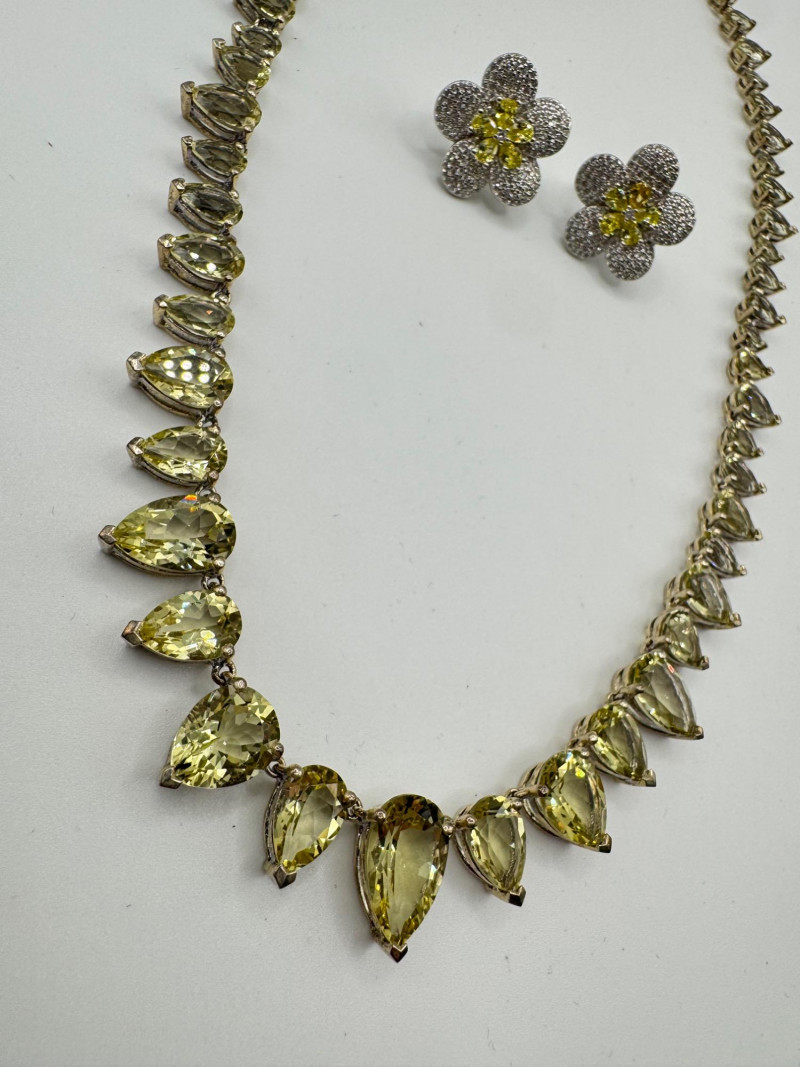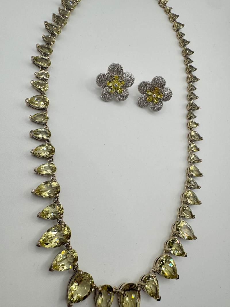 Sterling Necklace w/ Light Yellow Stones & Bella Luce Earrings 44.62g.