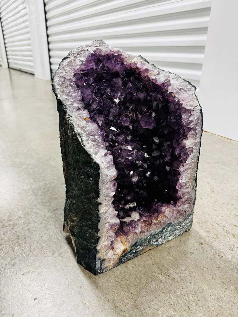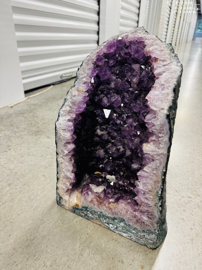 Large Natural Amethyst Cathedral Geode Specimen. Disclaimer: Stones and minerals are not tested for authenticity, origin, or treatment. Offered as-is. No refunds based on identification or quality.