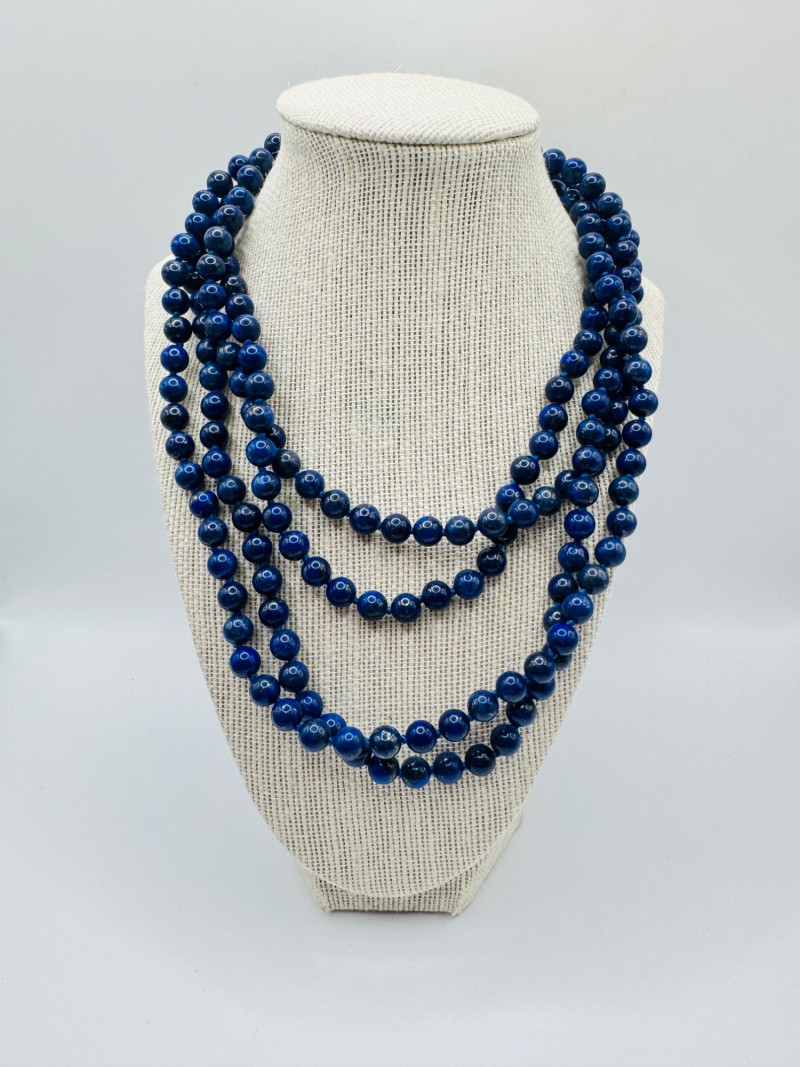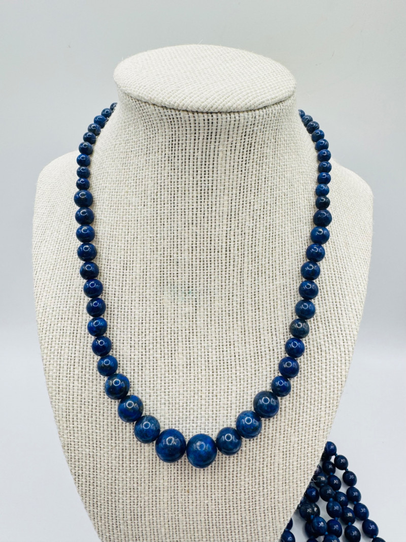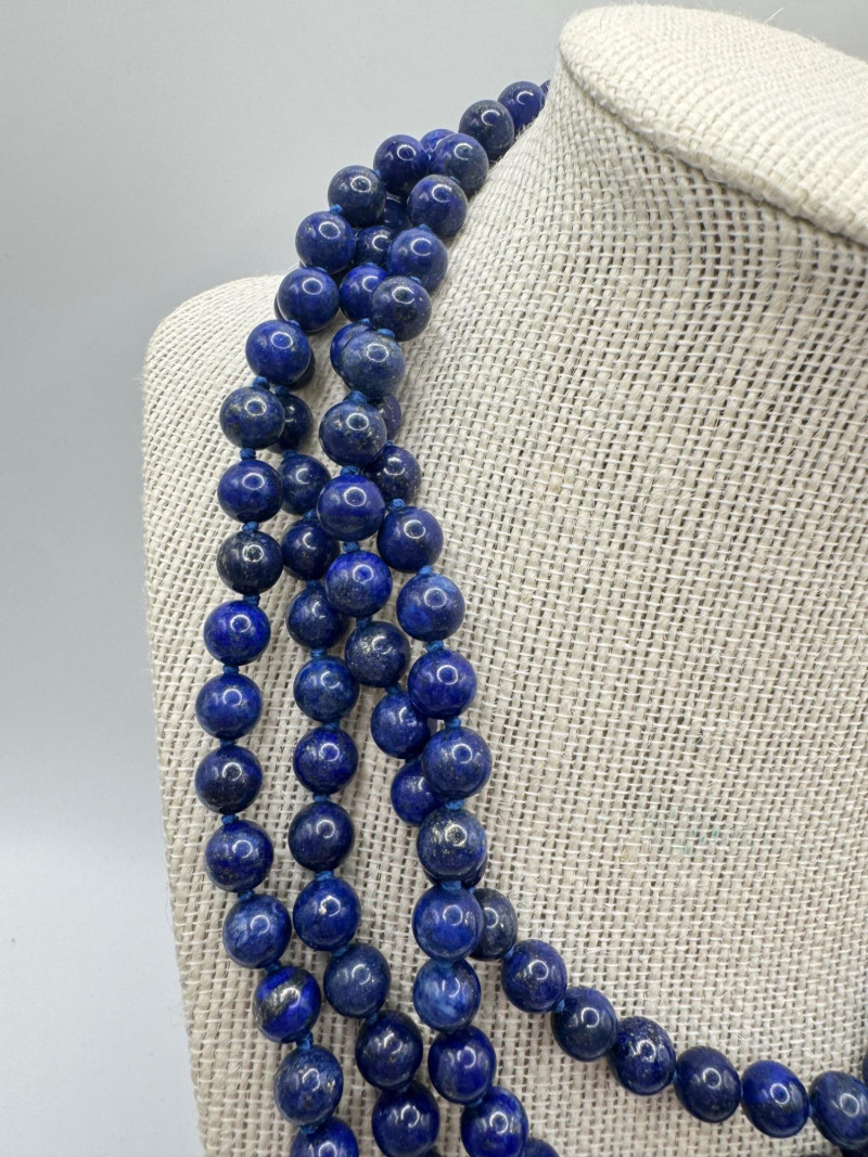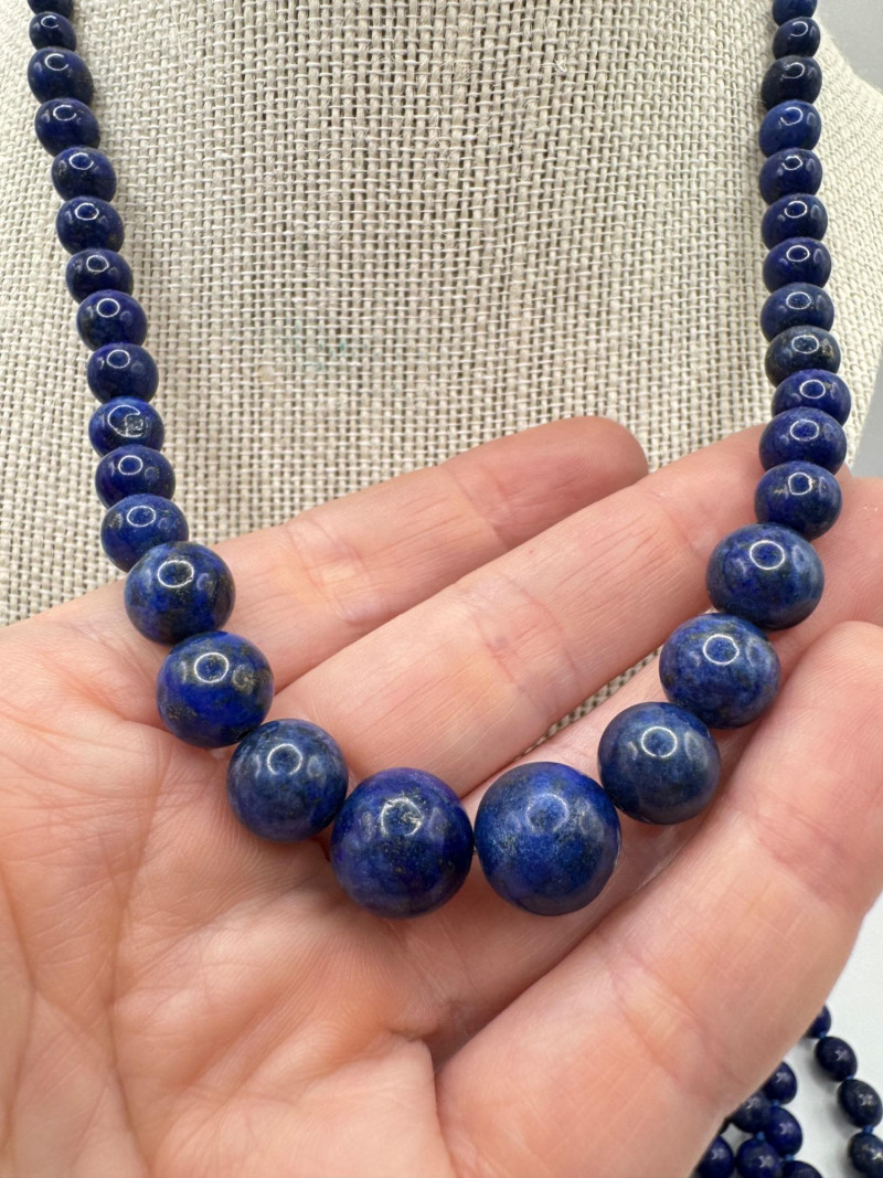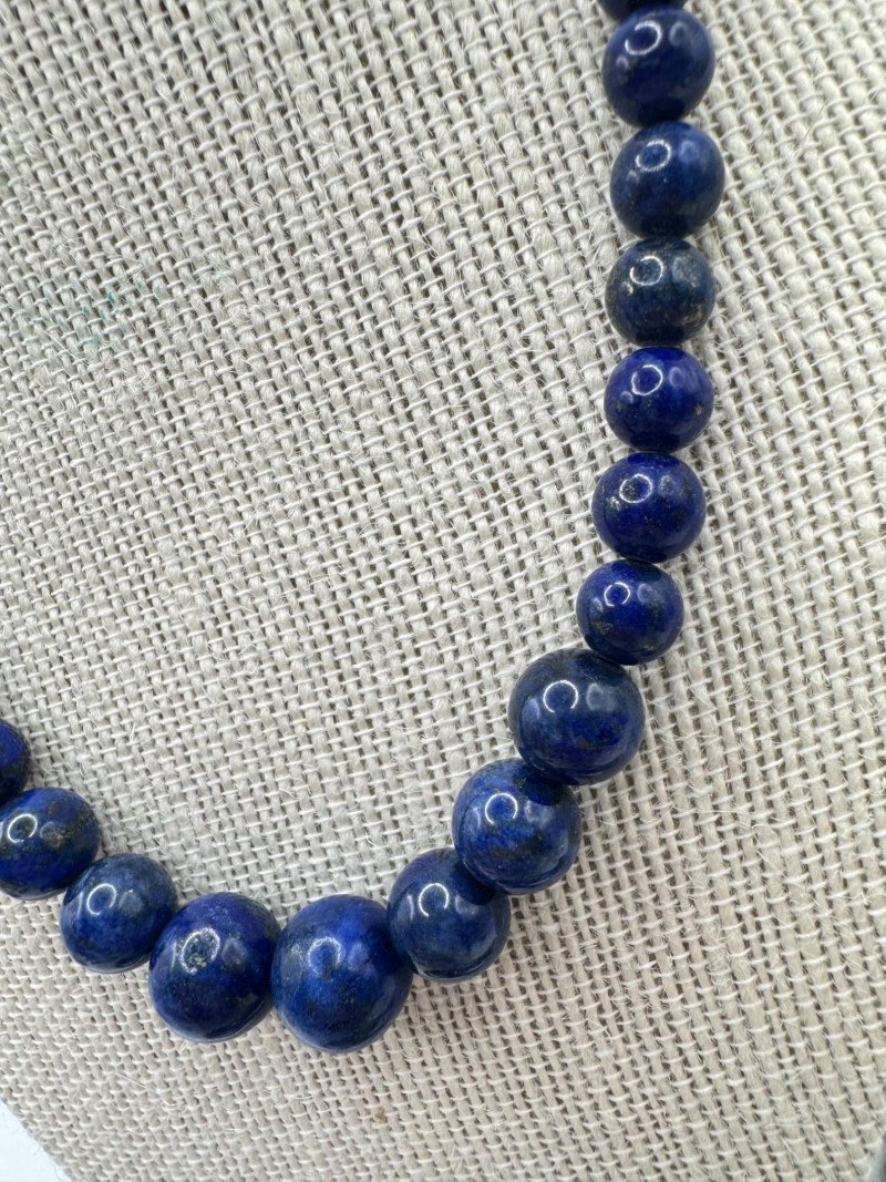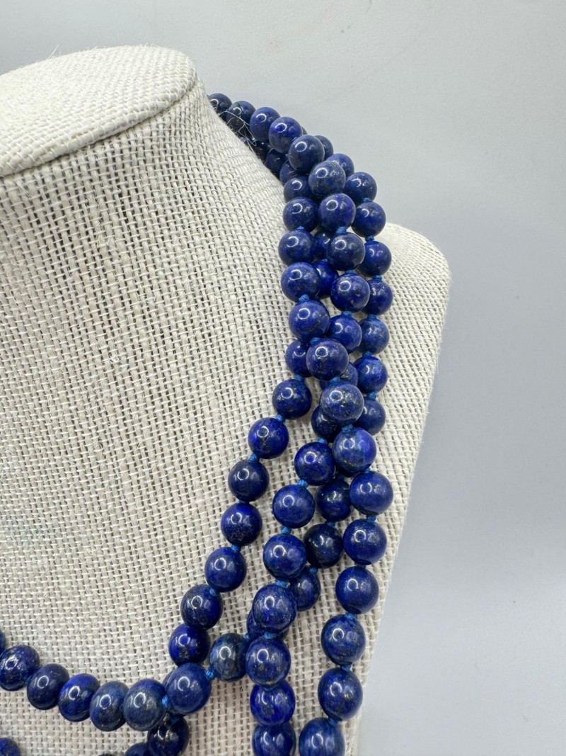 Includes three necklaces: Long strand of lapis-like beads (wrap style, extra long) Navajo-style beaded necklace with coral stones and carved blue fetish pendant Shorter lapis necklace with warm red accents Sajen sterling silver ring featuring carved lapis pharaoh face with blue accent stones Silver-tone earrings with starburst design and blue cabochons (unmarked)