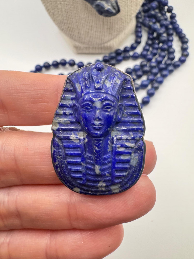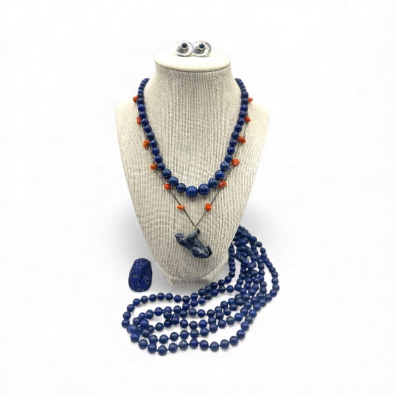 Mixed Lapis & Coral Jewelry Set w/ Sajen Pharaoh Ring & Fetish Pendant
