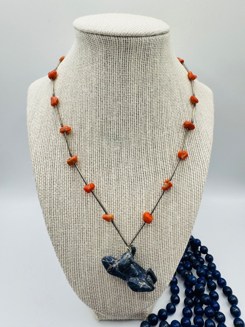 Lot # 94 - Mixed Lapis & Coral Jewelry Set w/ Sajen Pharaoh Ring & Fetish Pendant