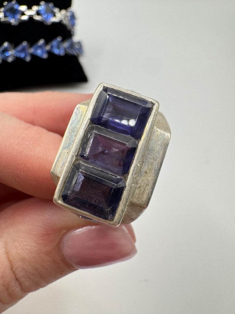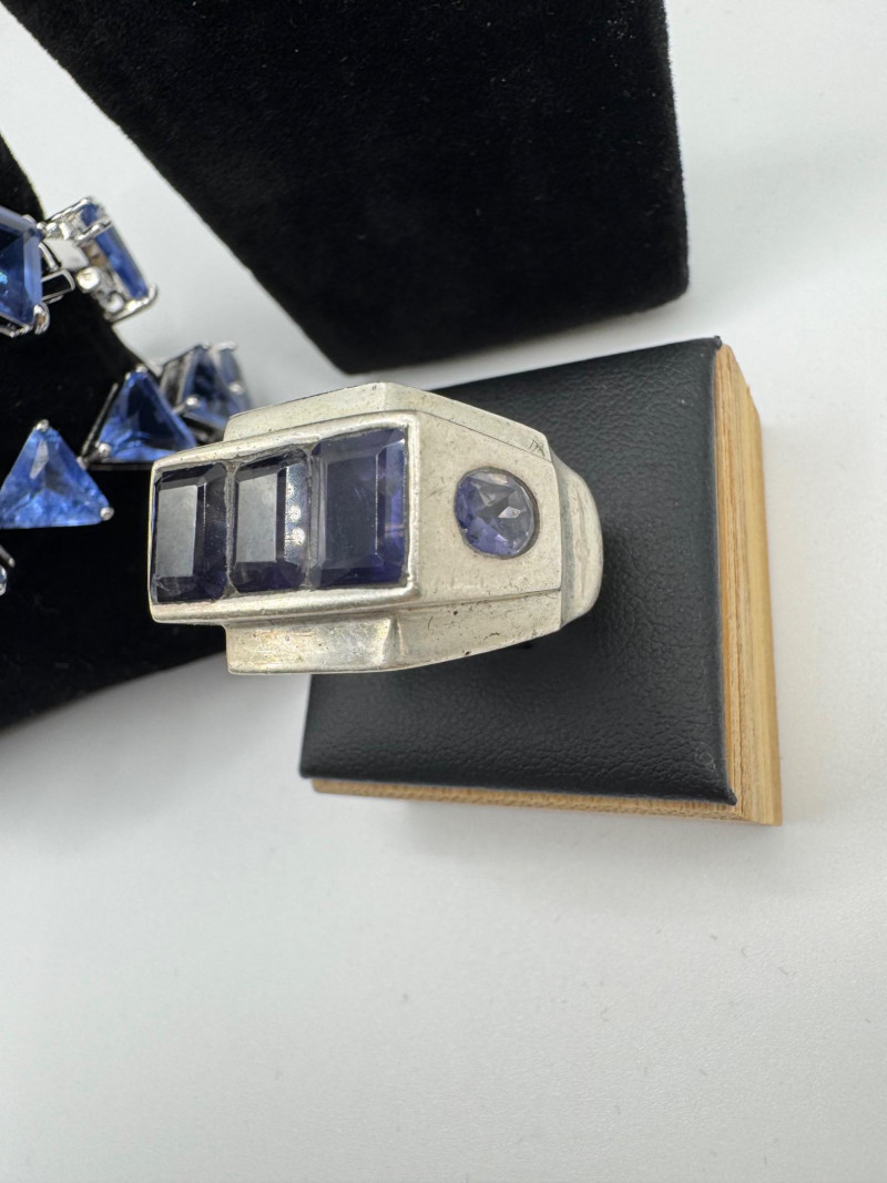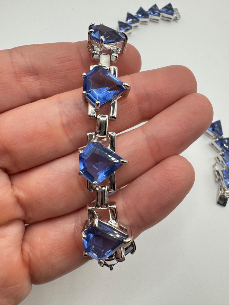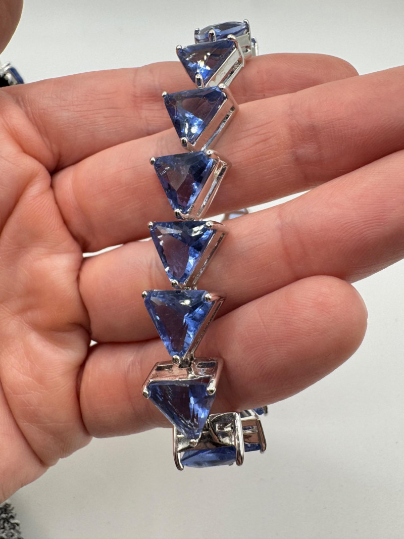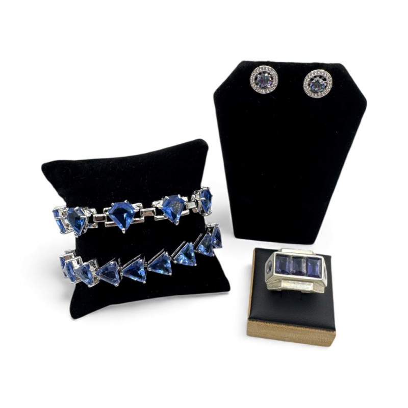 Sterling Silver Blue Stone Jewelry Set – Bracelets, Ring & Studs 71.8g.