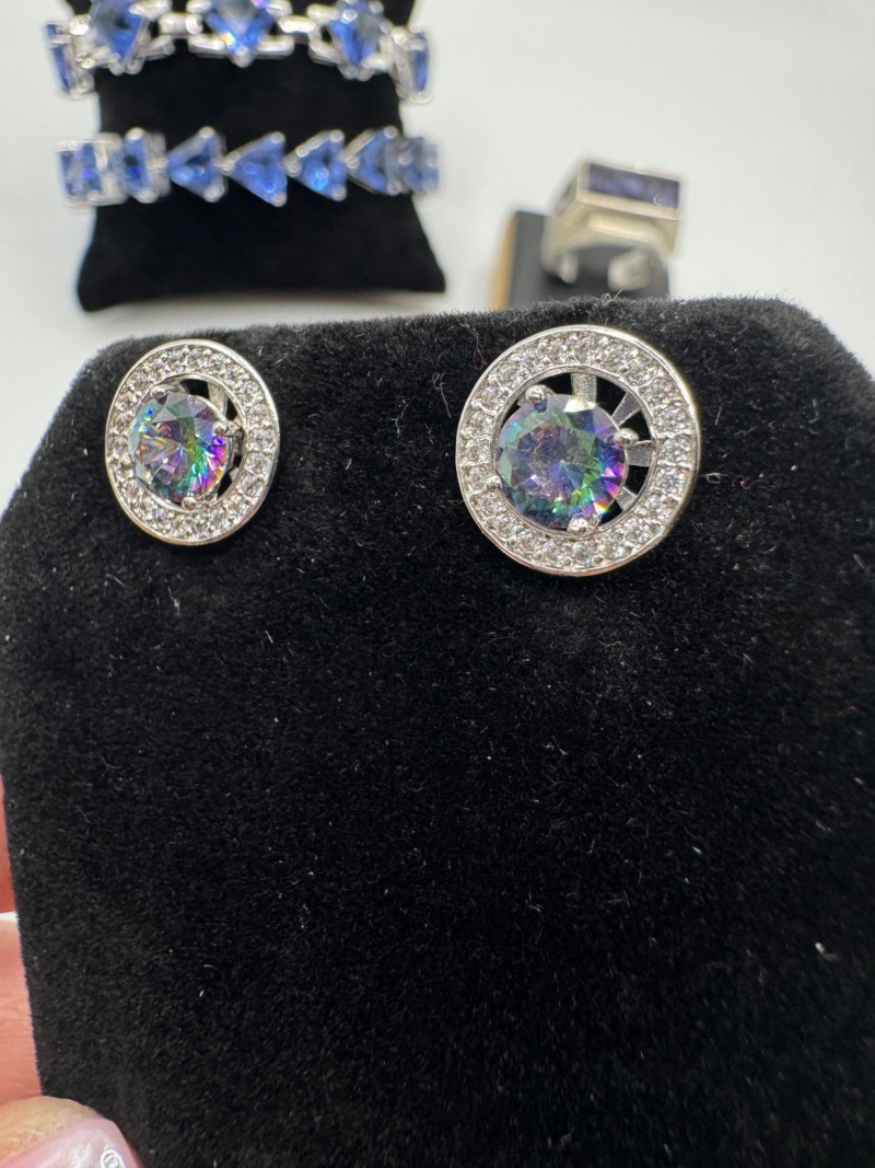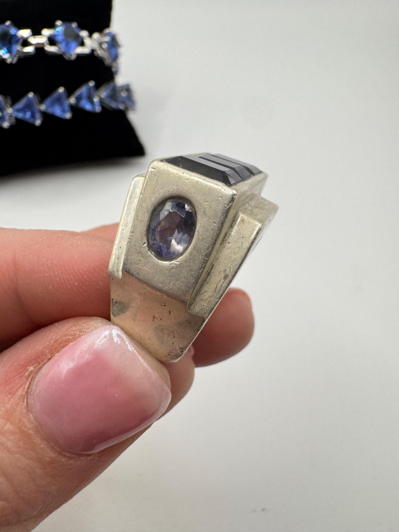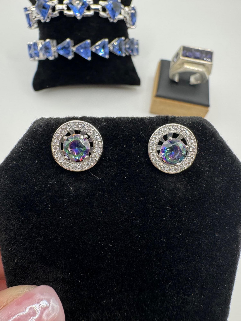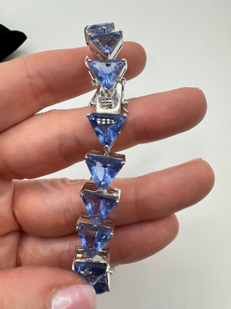 Sterling Silver Blue Stone Jewelry Set – Bracelets, Ring & Studs 71.8g.