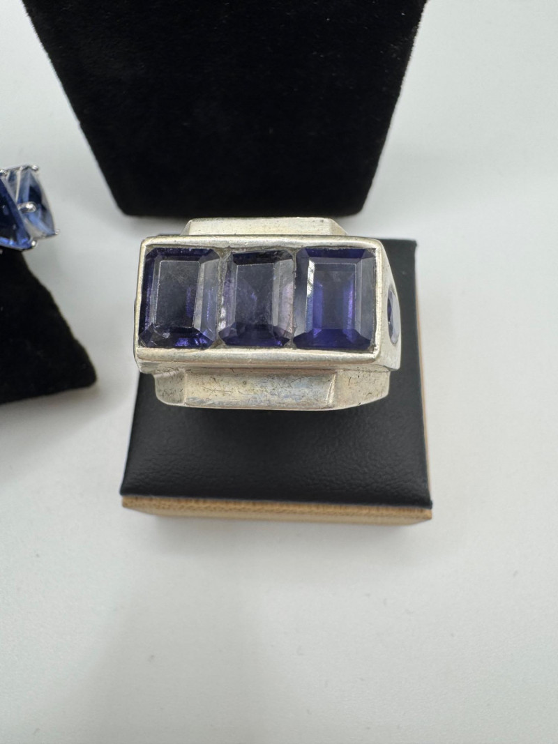 Lot # 116 - Sterling Silver Blue Stone Jewelry Set – Bracelets, Ring & Studs 71.8g