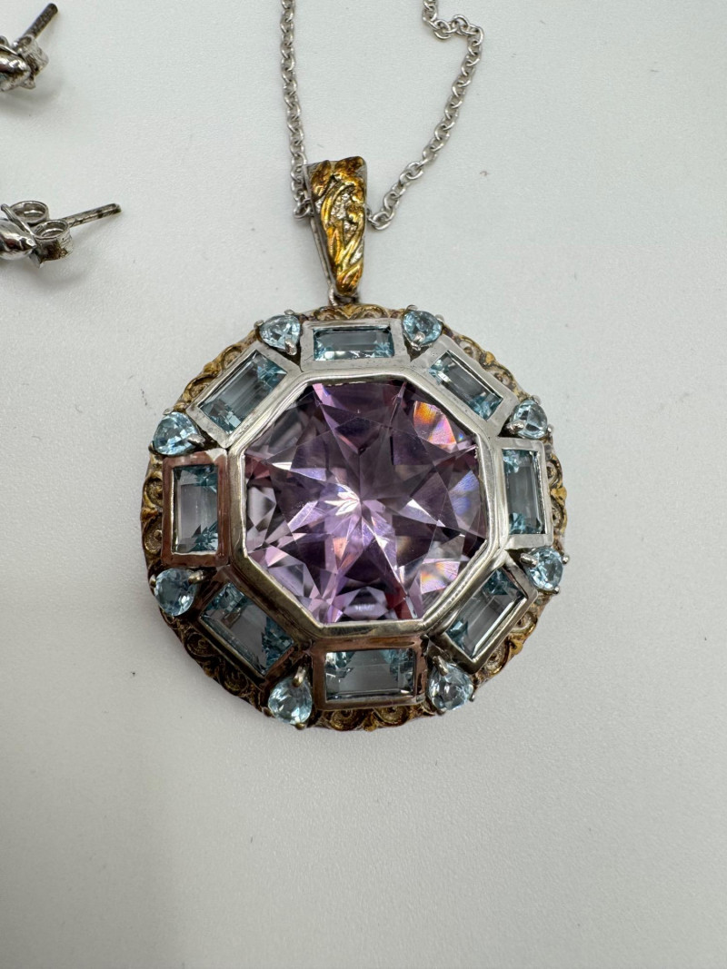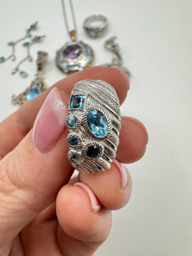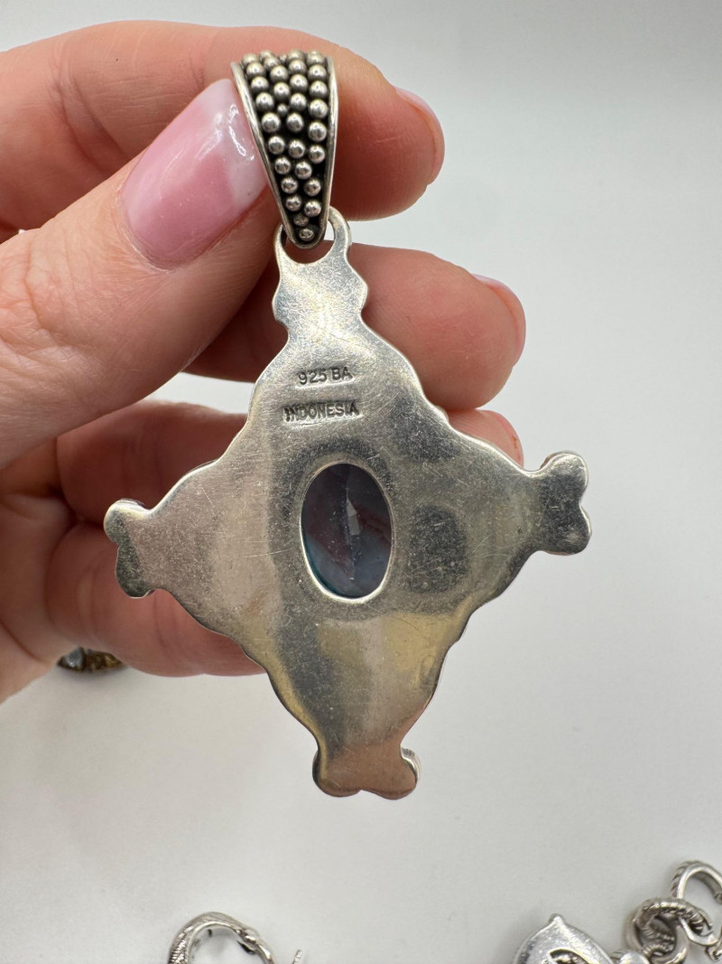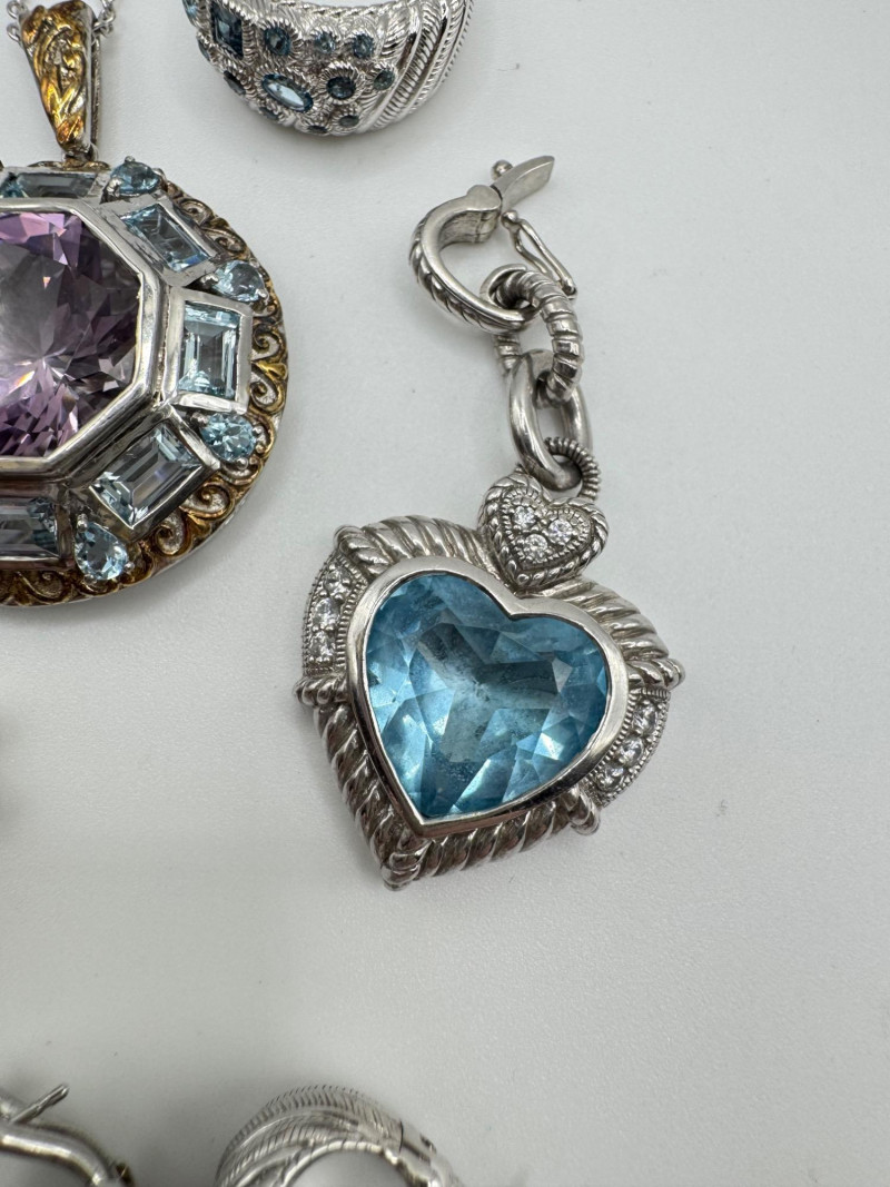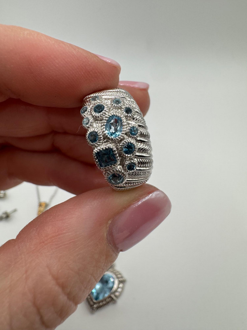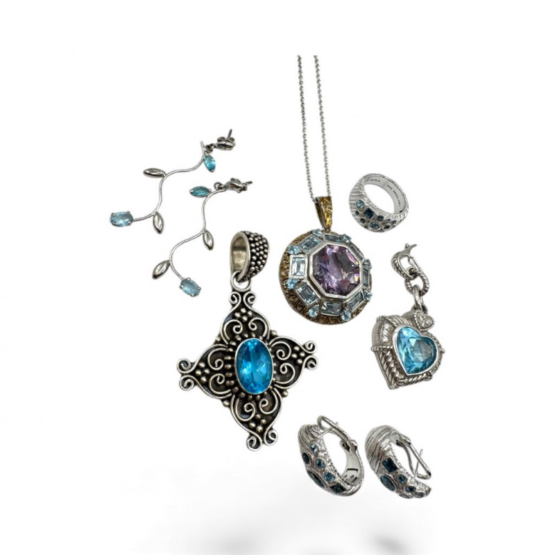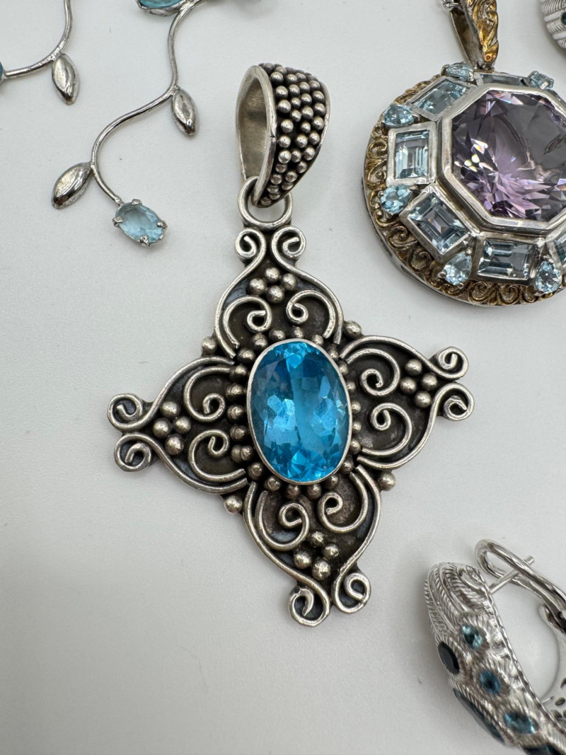 Judith Ripka & Bali Sterling Jewelry Lot – Blue Stones, 75.41g. General Disclaimer:All jewelry in this auction is sold as-is. Metals and gemstones have not been tested unless specified. No guarantees are made regarding metal purity, gemstone authenticity, or origin. No refunds based on identification or quality.