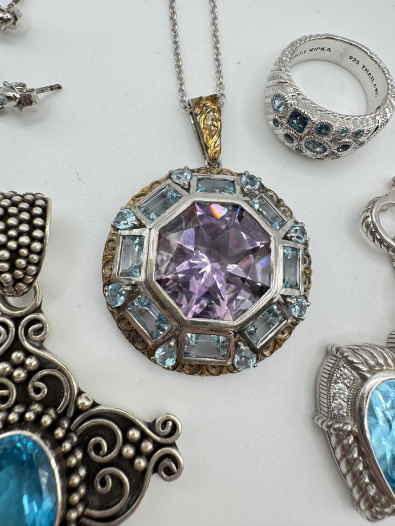 Lot # 123 - Judith Ripka & Bali Sterling Jewelry Lot – Blue Stones, 75.41g